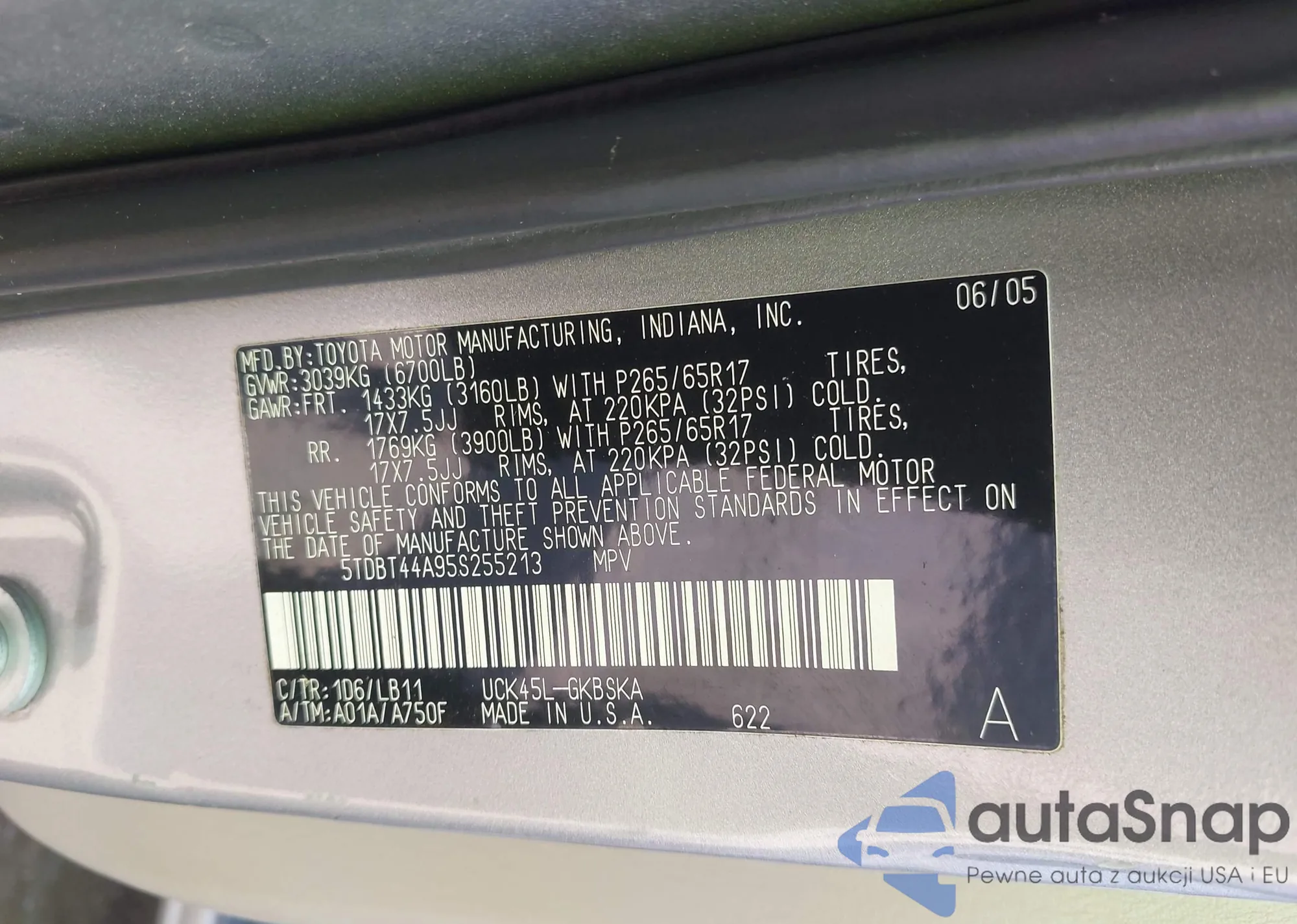LOT: 42671483 VIN: 5TDBT44A95S255213