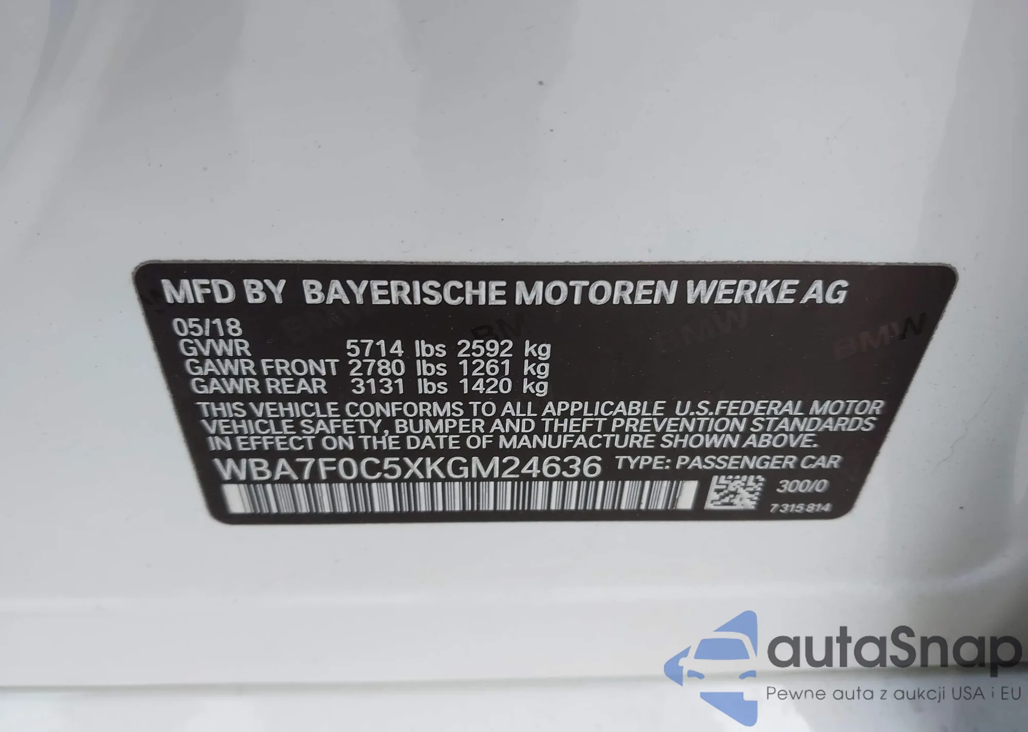 • VIN WBA7F0C5XKGM24636