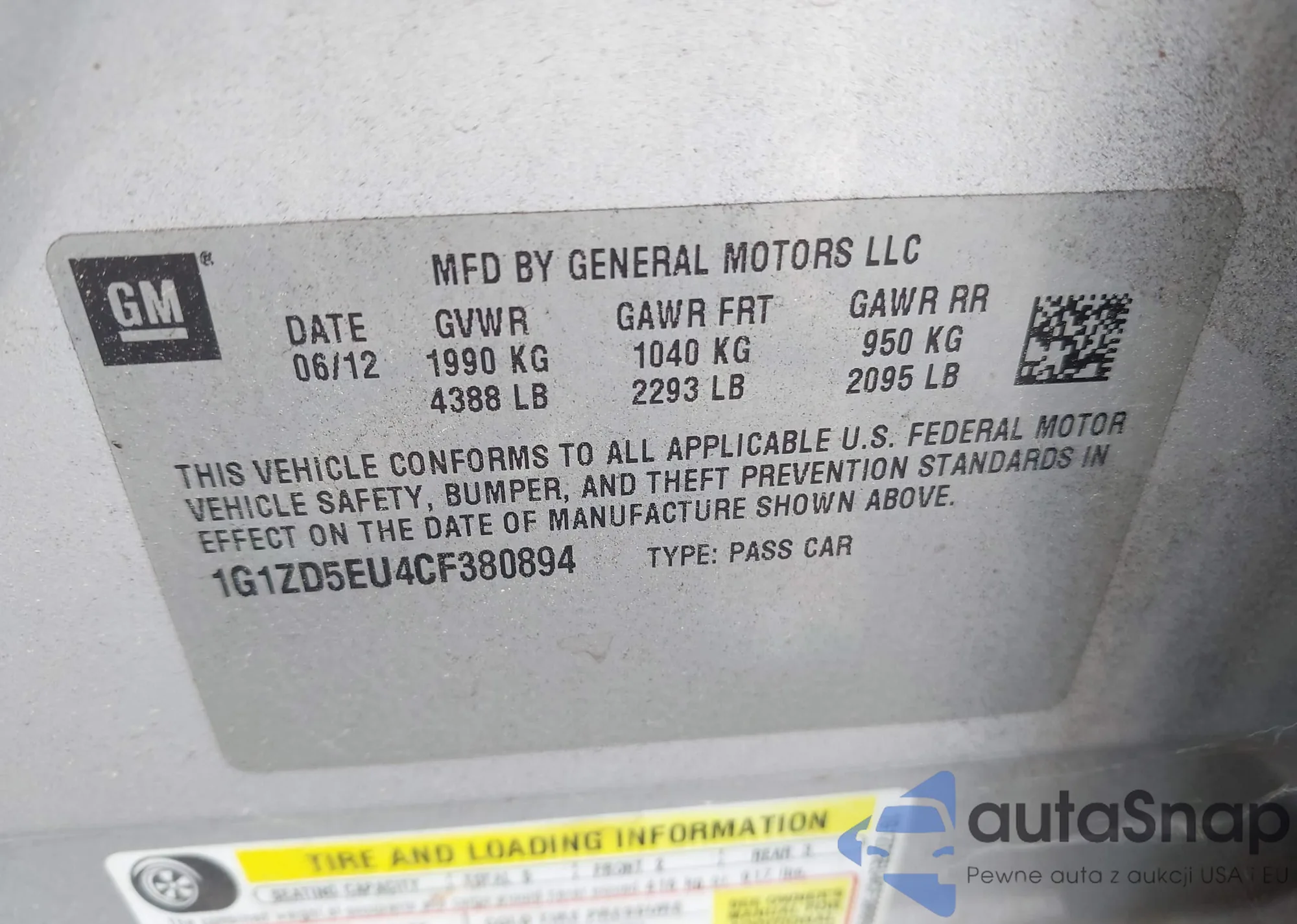 • VIN 1G1ZD5EU4CF380894