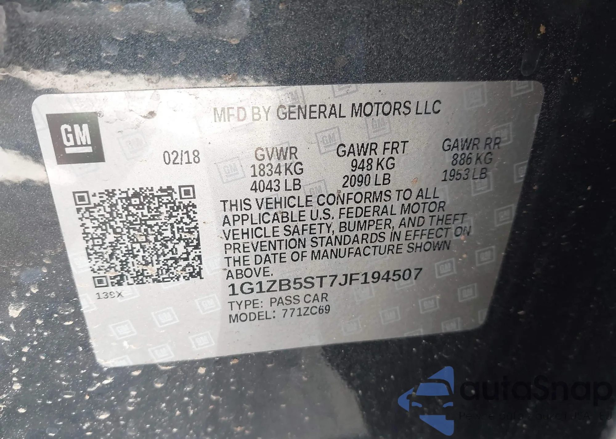 • VIN 1G1ZB5ST7JF194507