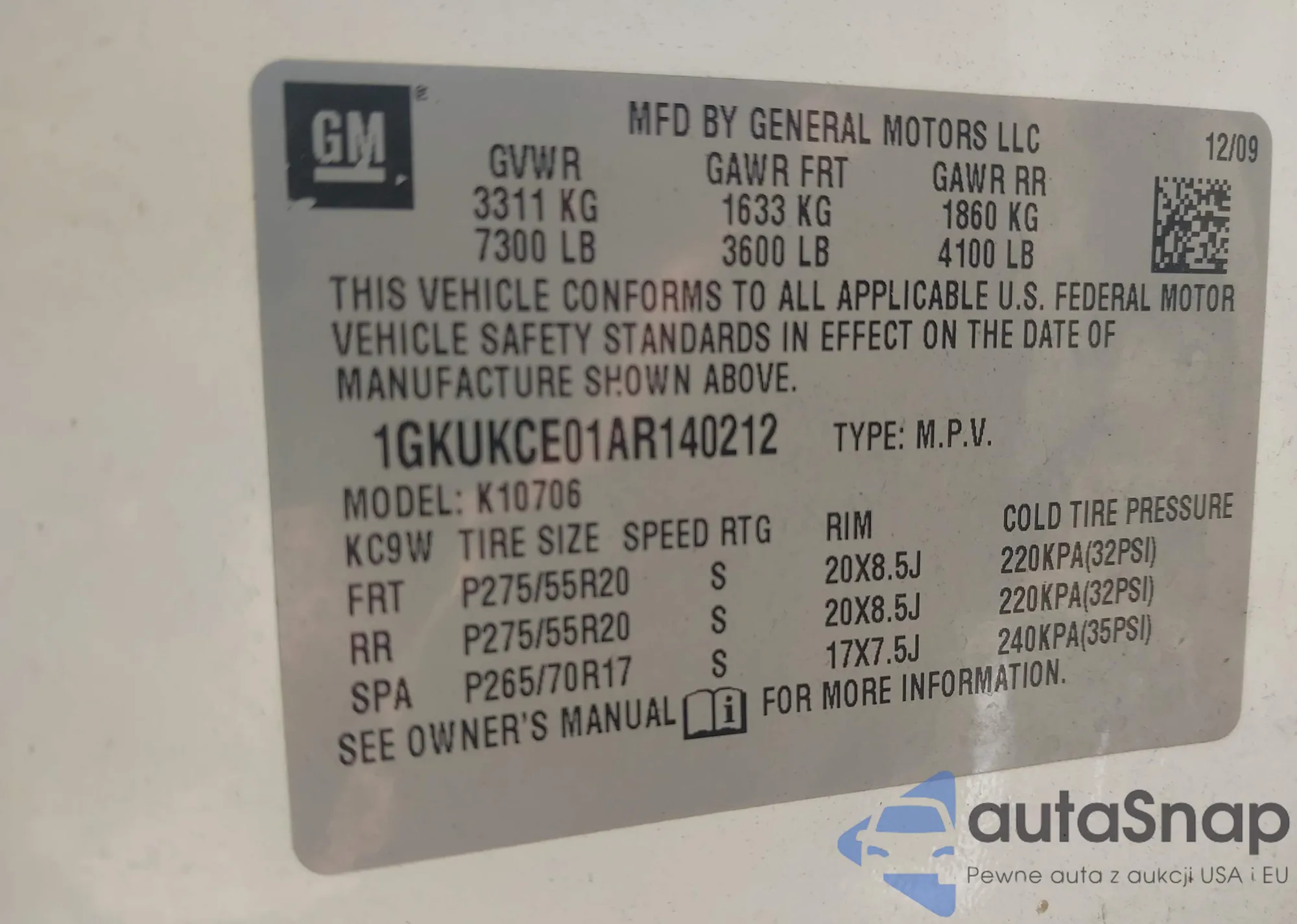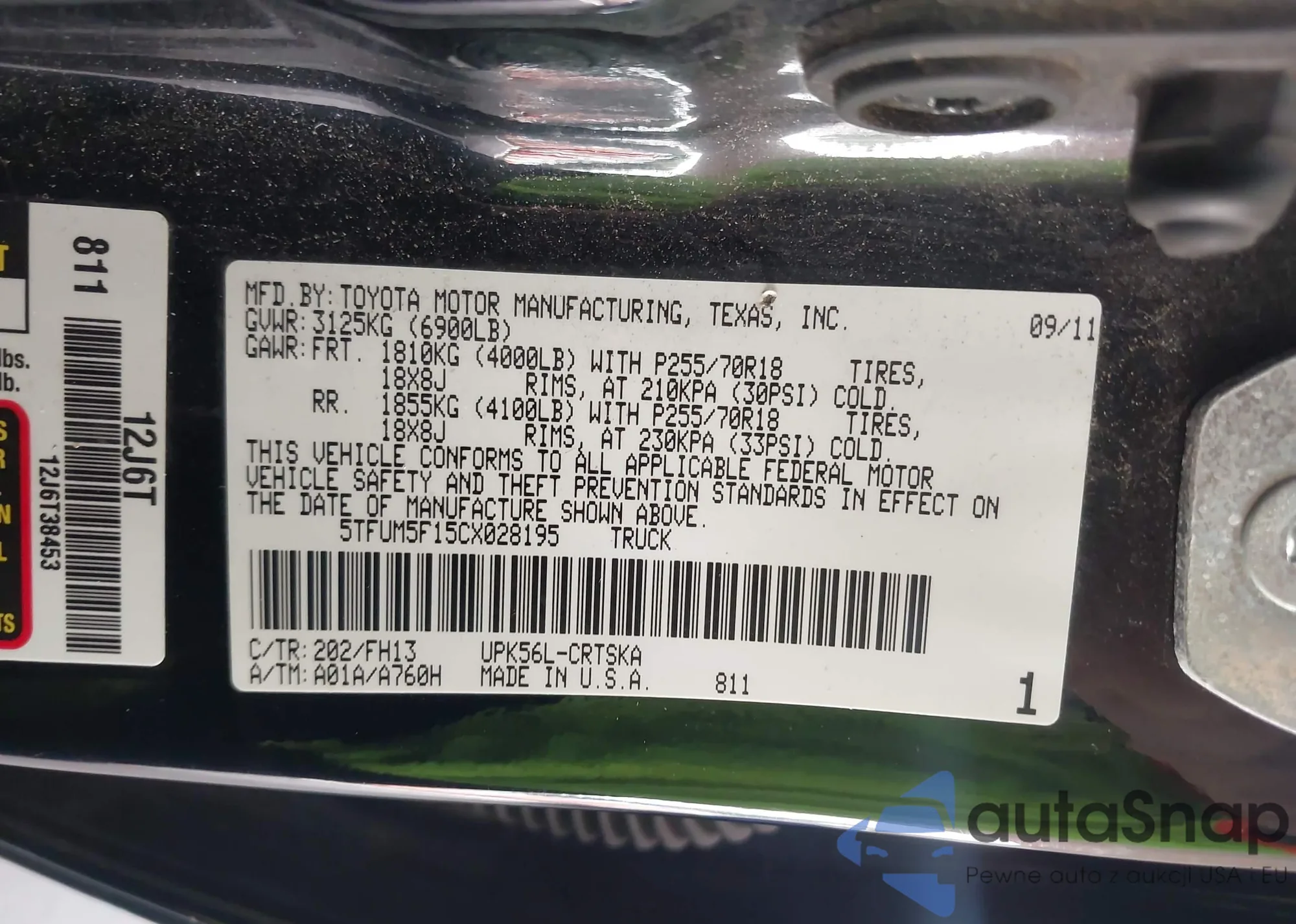 LOT: 42607204 VIN: 5TFUM5F15CX028195