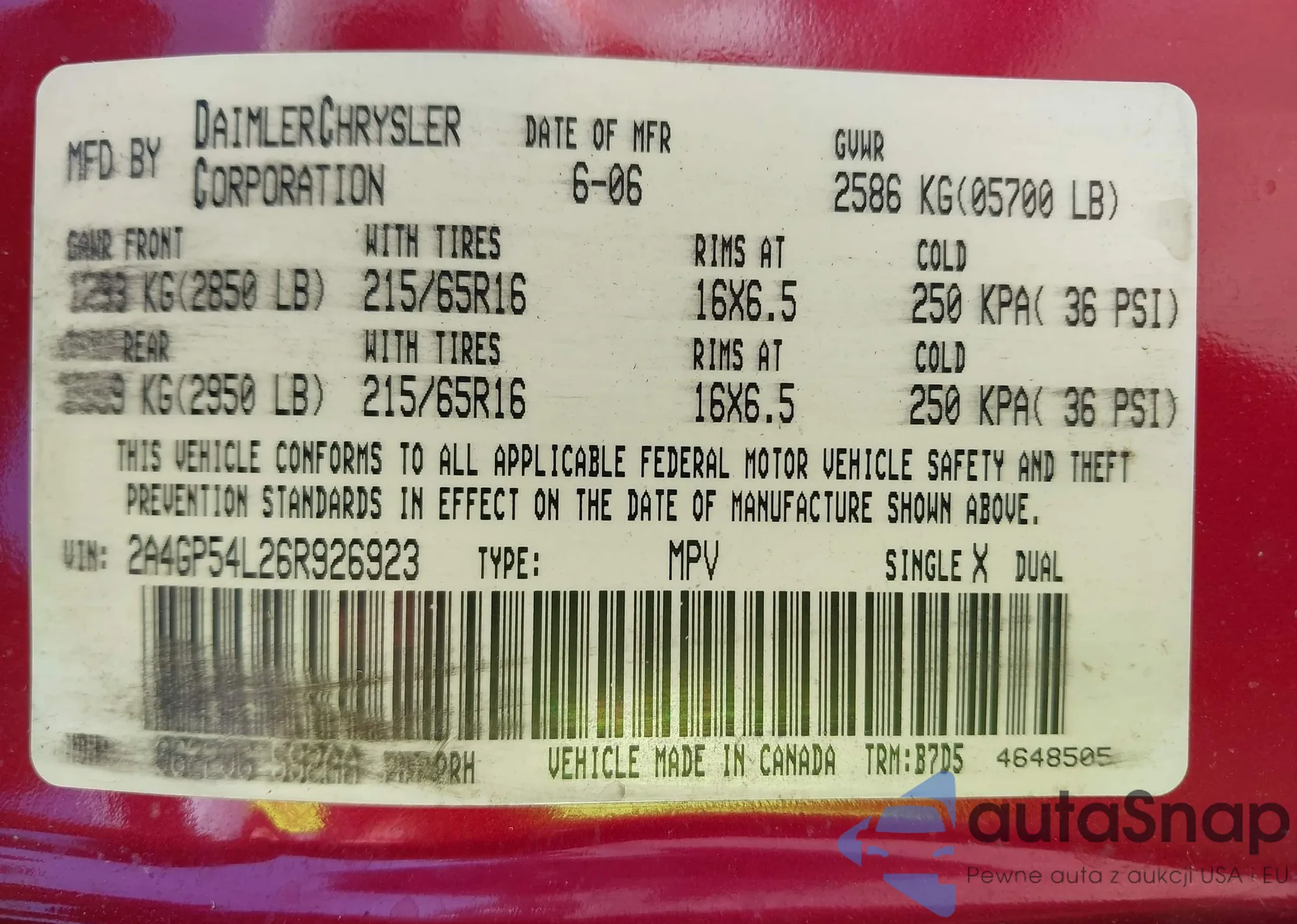 • VIN 2A4GP54L26R926923