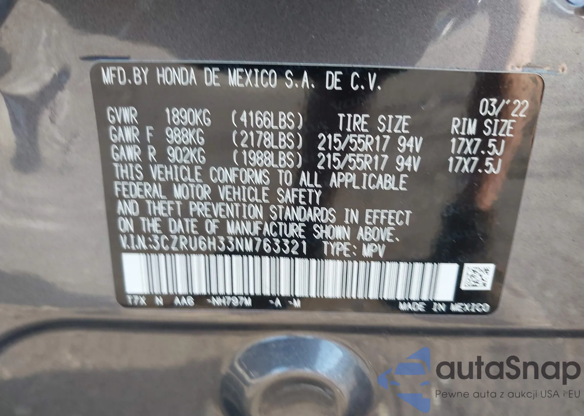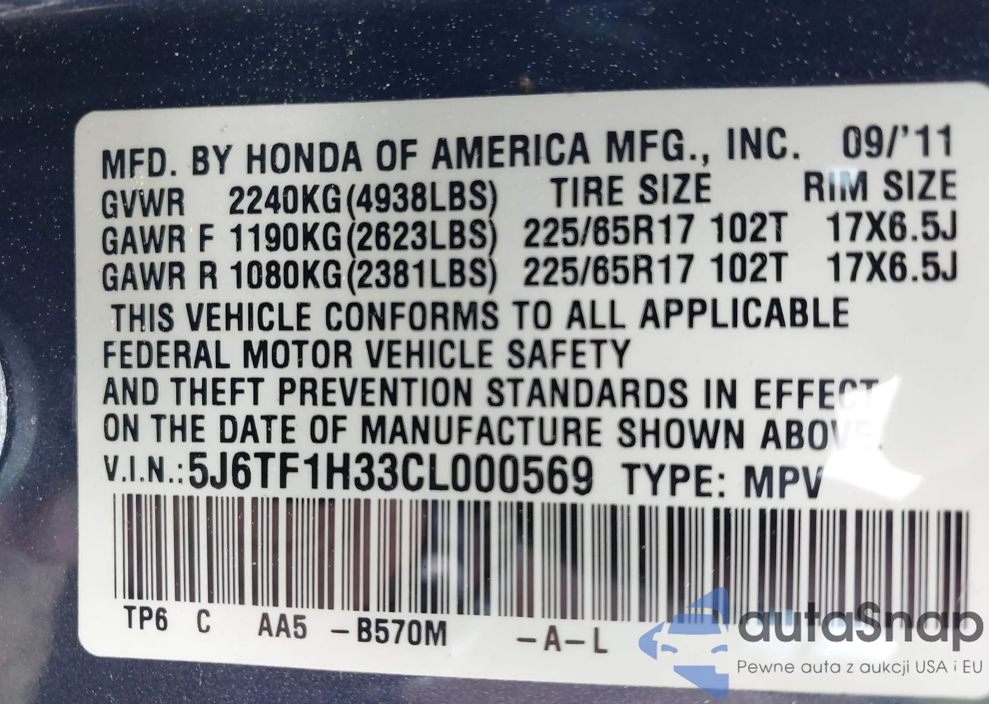 • VIN 5J6TF1H33CL000569