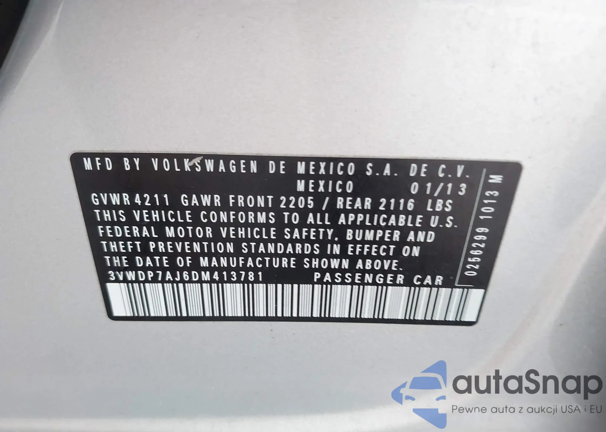 • VIN 3VWDP7AJ6DM413781