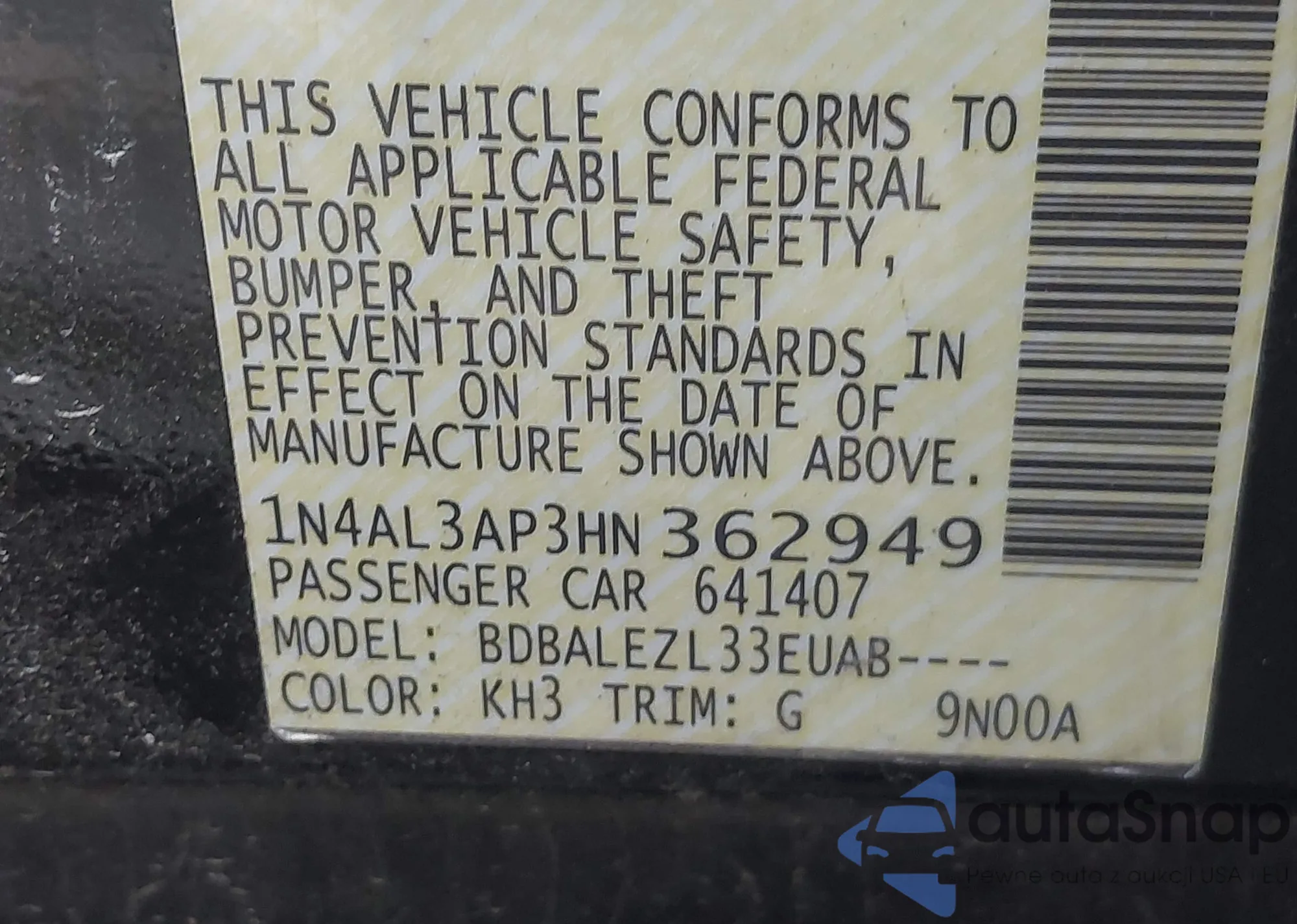 LOT: 40759117 VIN: 1N4AL3AP3HN362949