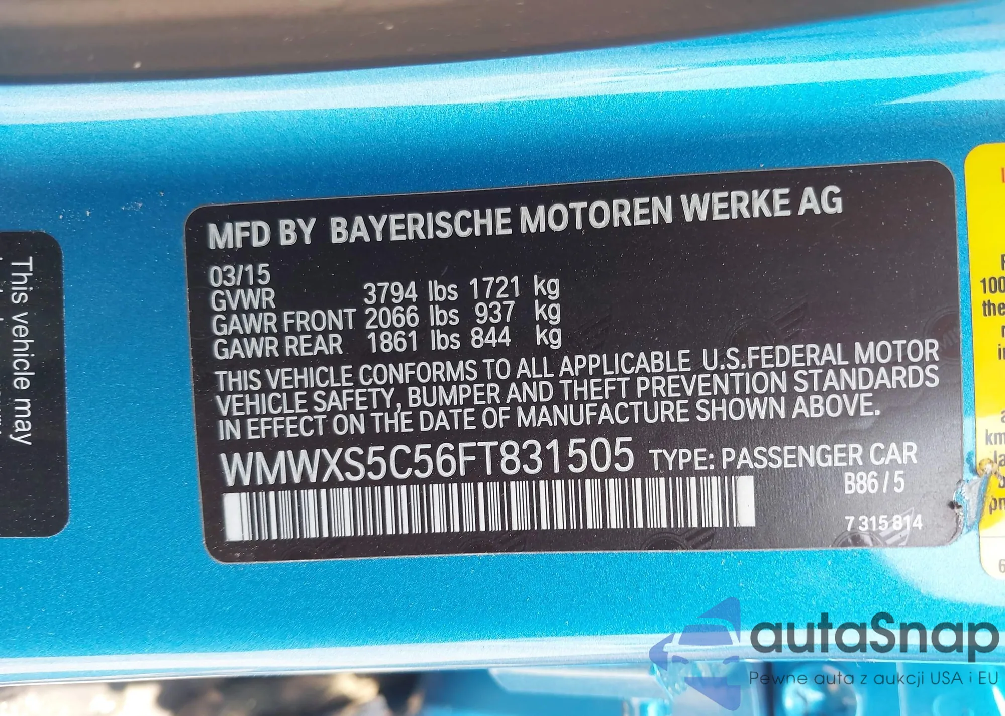 LOT: 42155398 VIN: WMWXS5C56FT831505