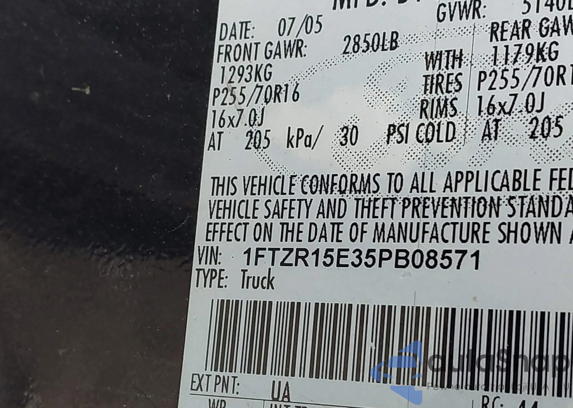 • VIN 1FTZR15E35PB08571