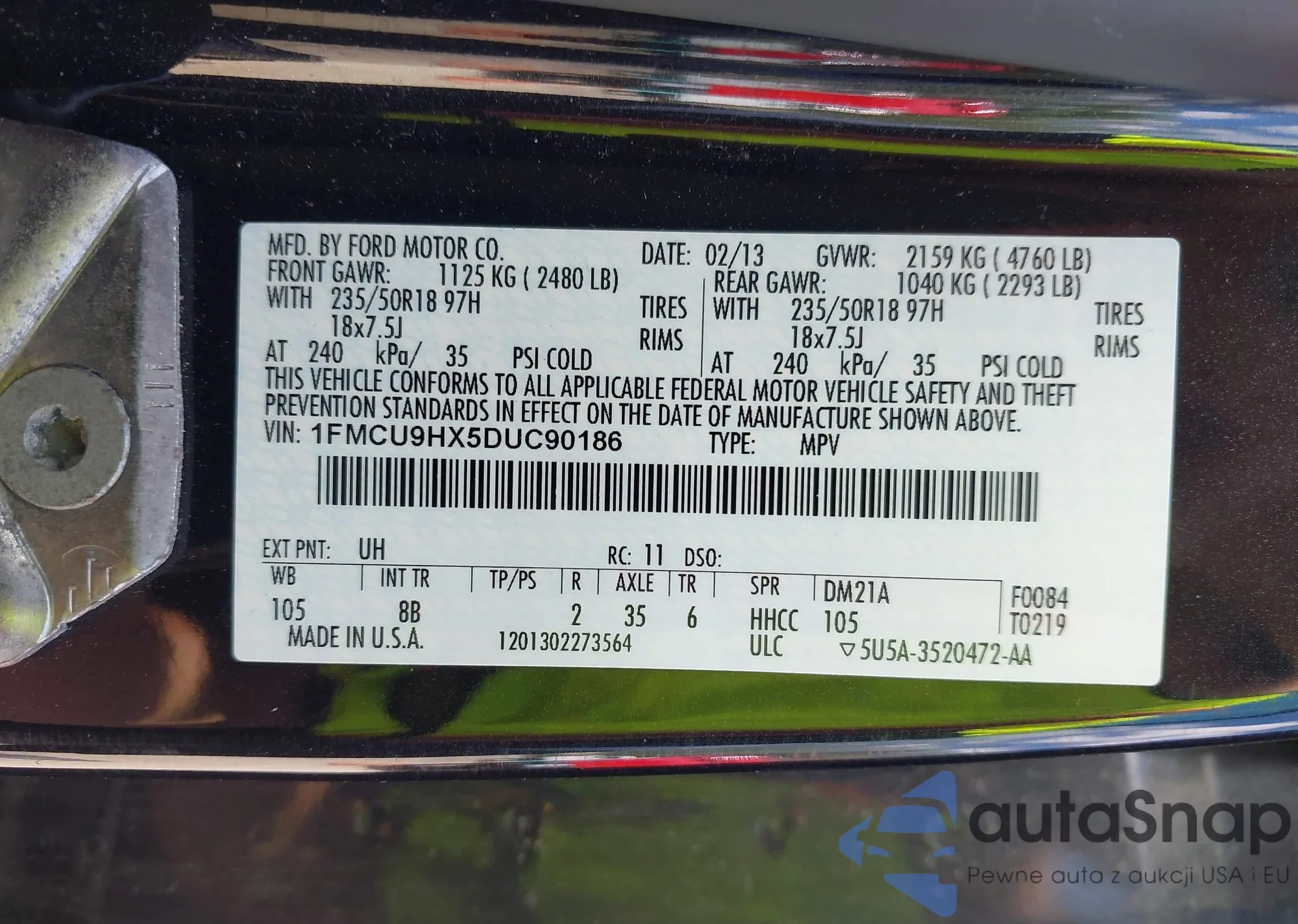 LOT: 42650691 VIN: 1FMCU9HX5DUC90186