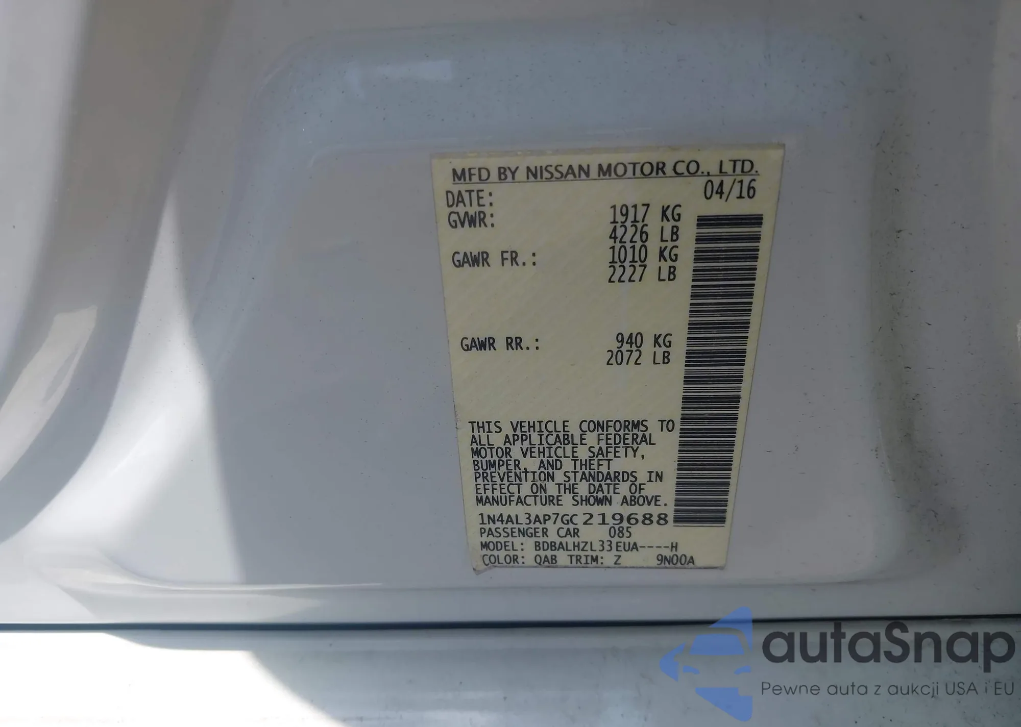 • VIN 1N4BL4CV4RN301228