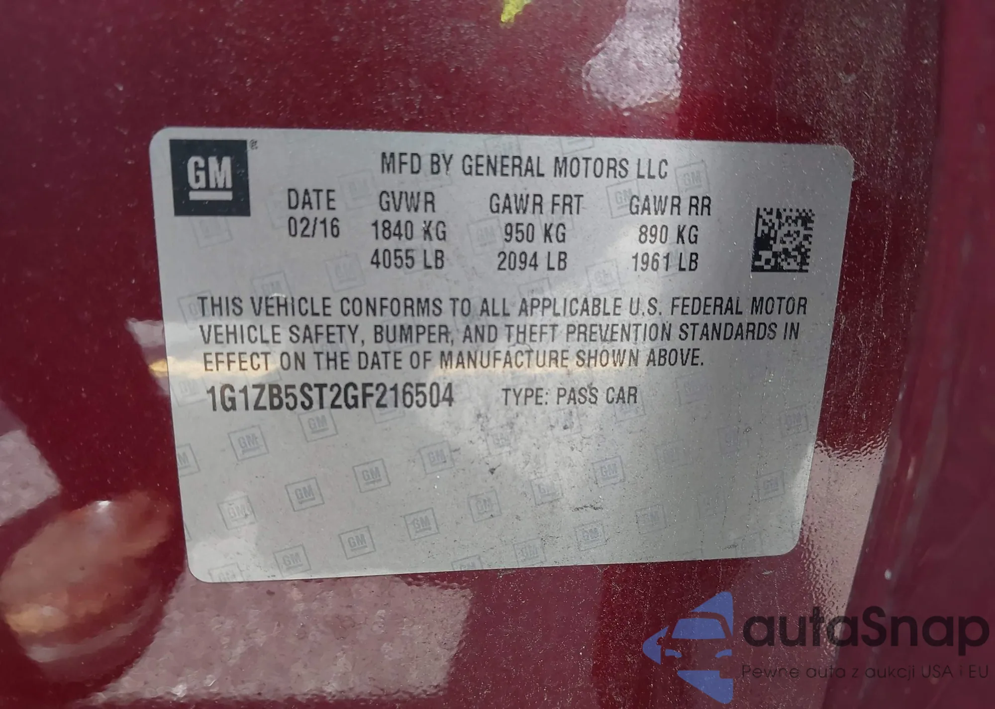 LOT: 42455094 VIN: 1G1ZB5ST2GF216504