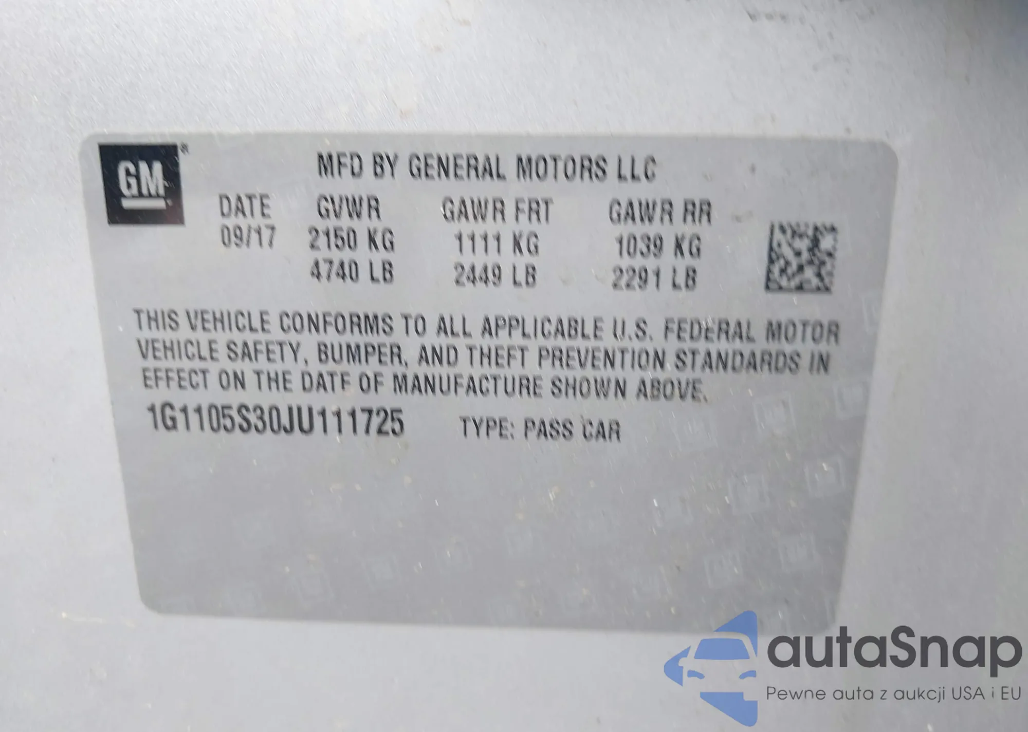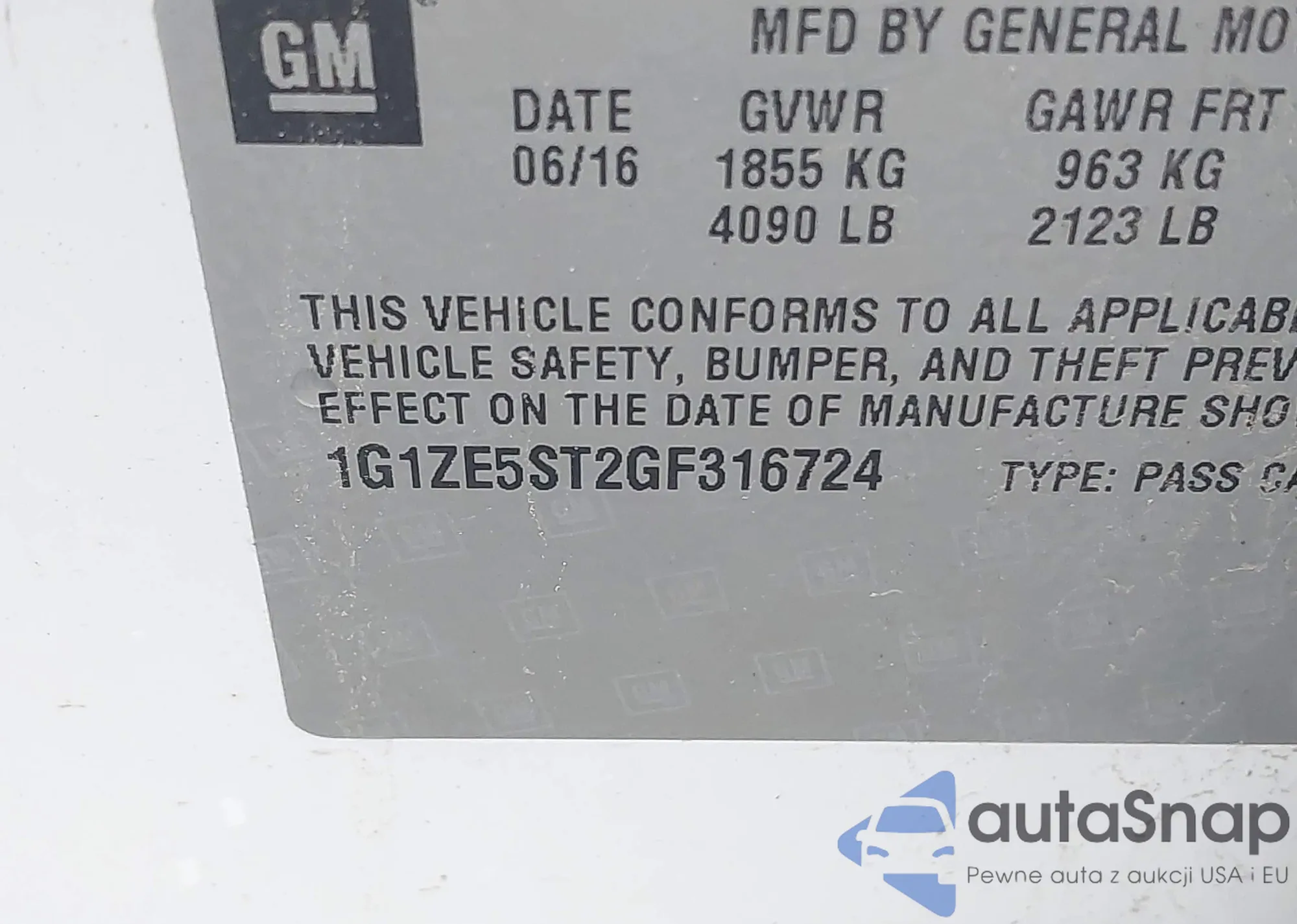 LOT: 42440234 VIN: 1G1BE5SM5G7246169