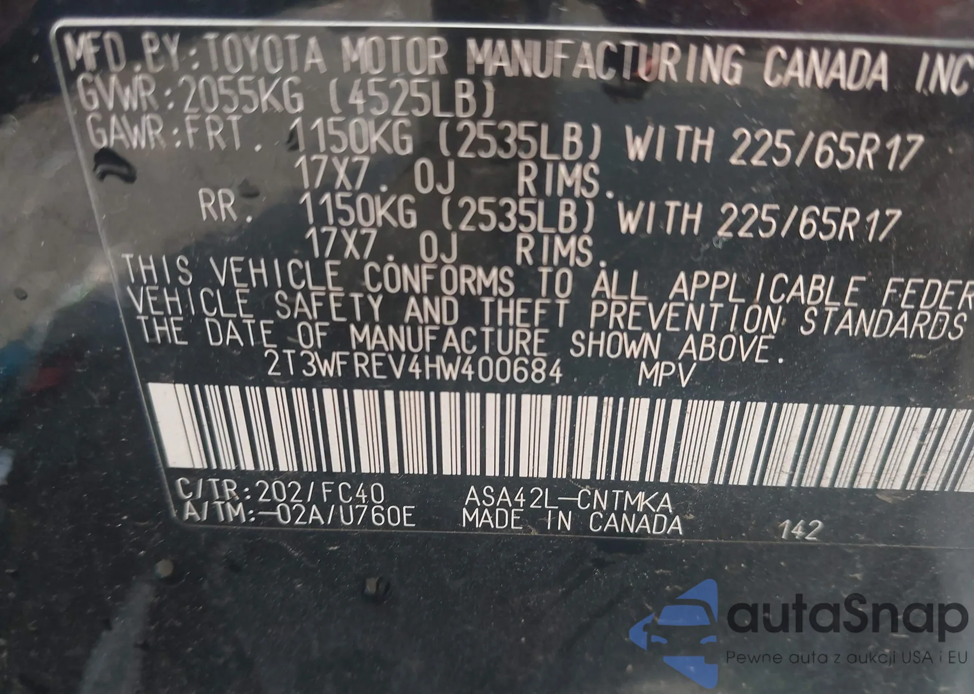 • VIN 2T3WFREV4HW400684