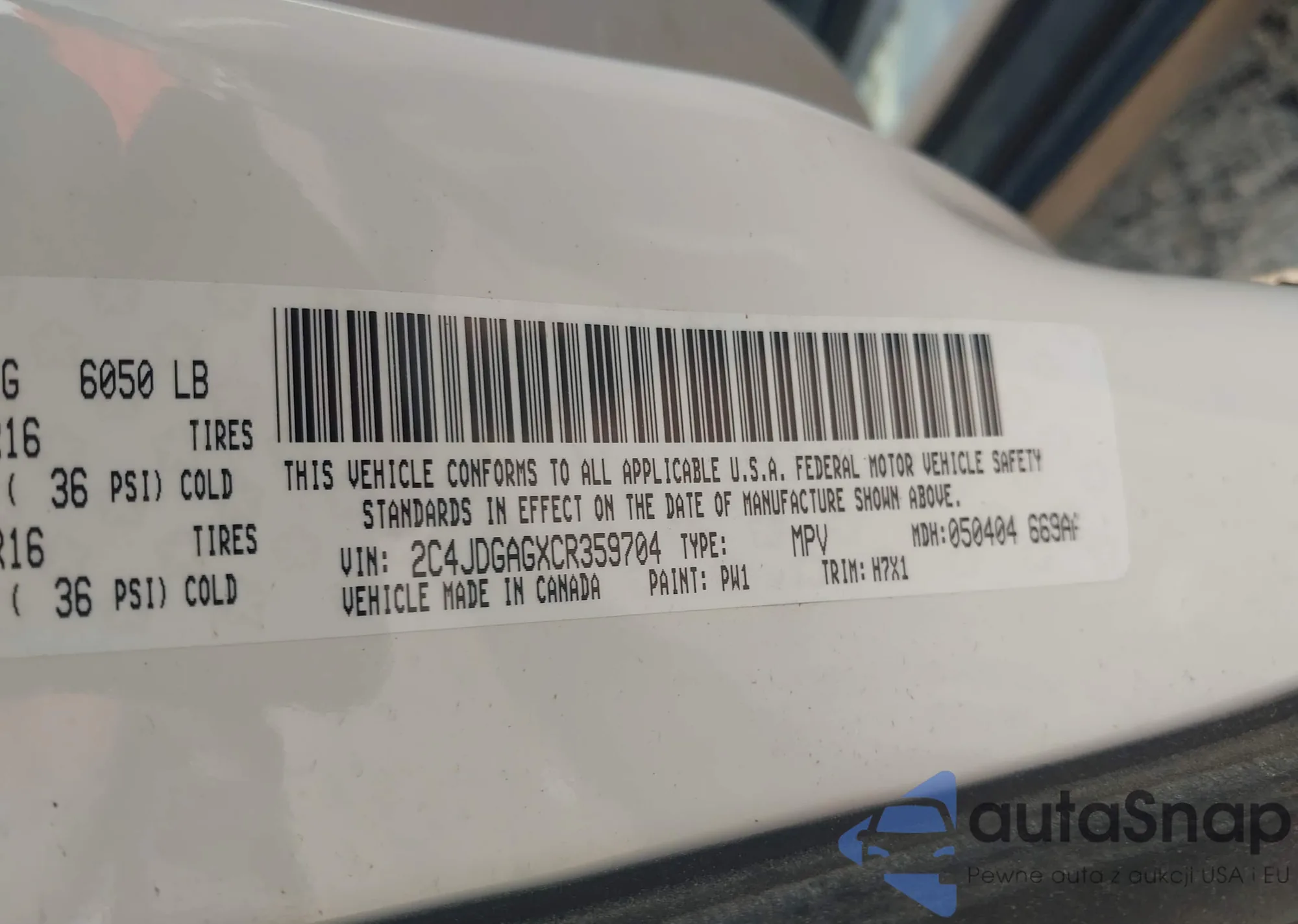 • VIN 2C4JDGAGXCR359704
