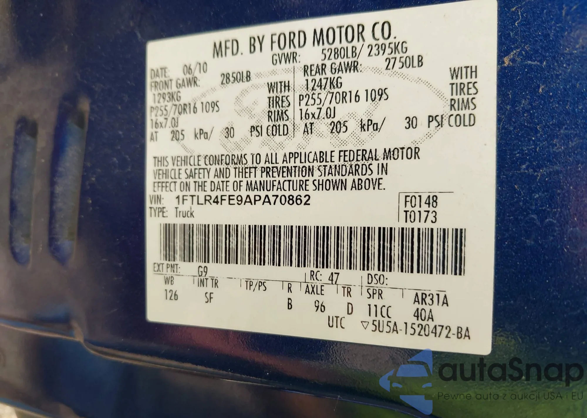 LOT: 42442229 VIN: 1FTLR4FE9APA70862