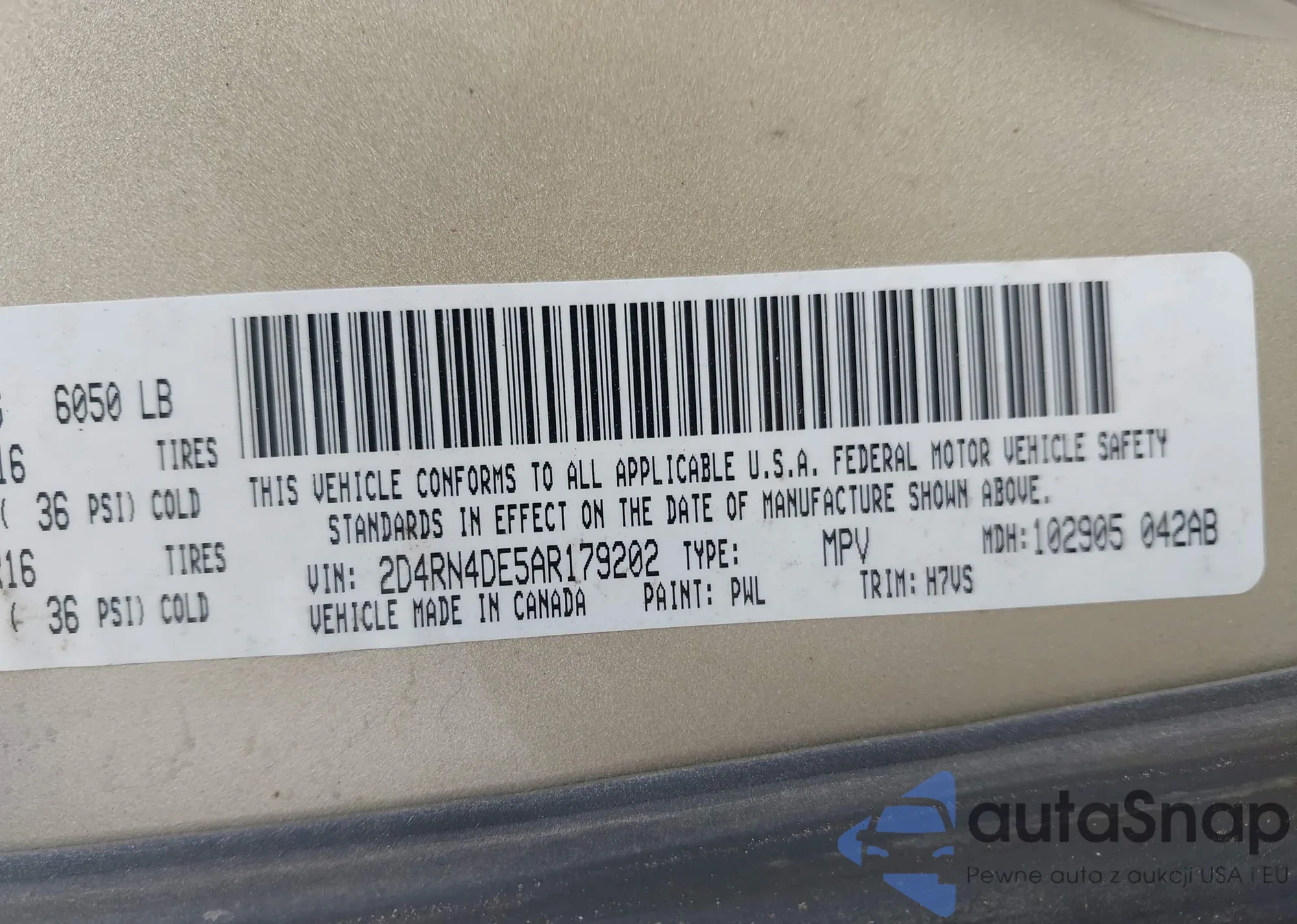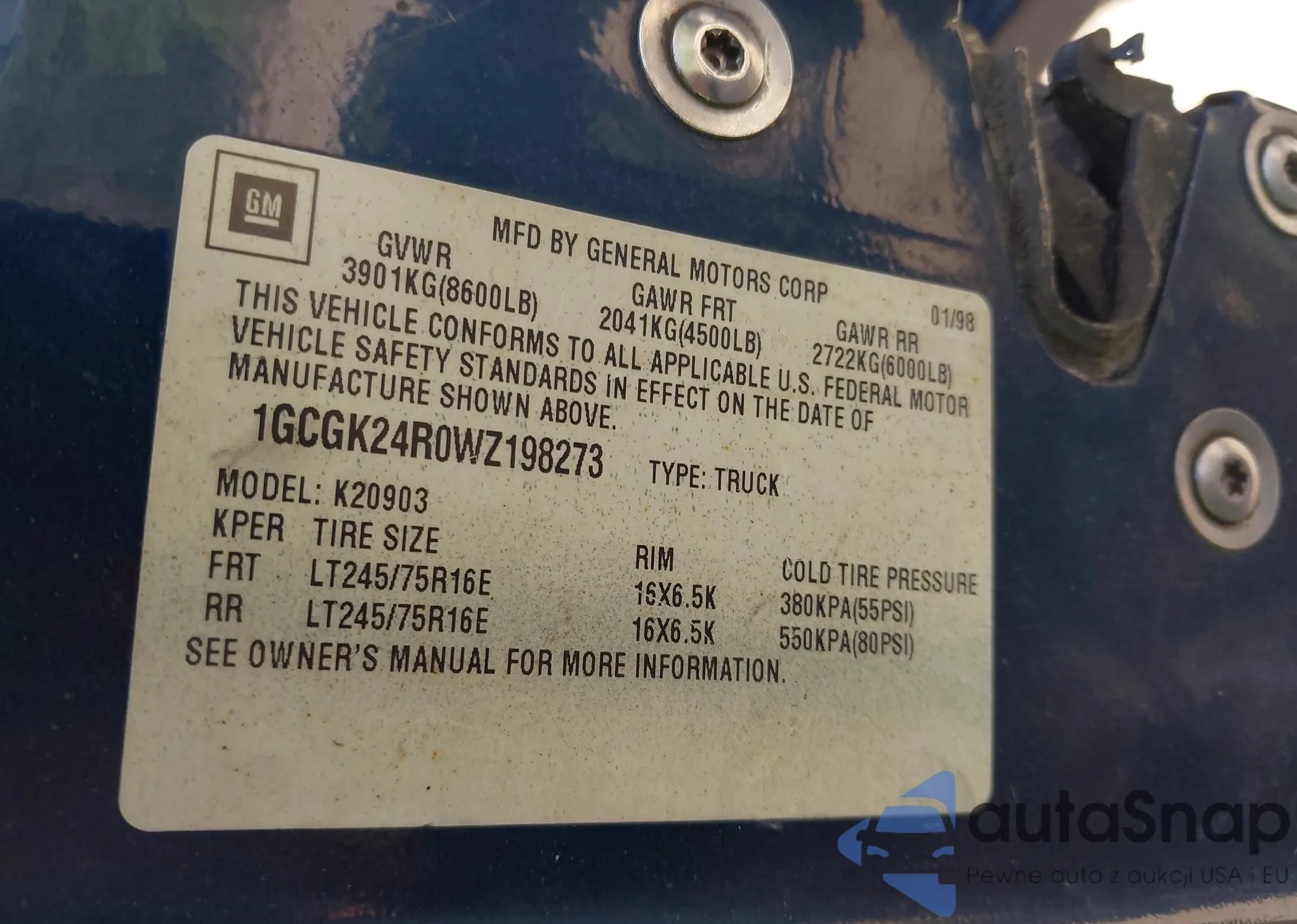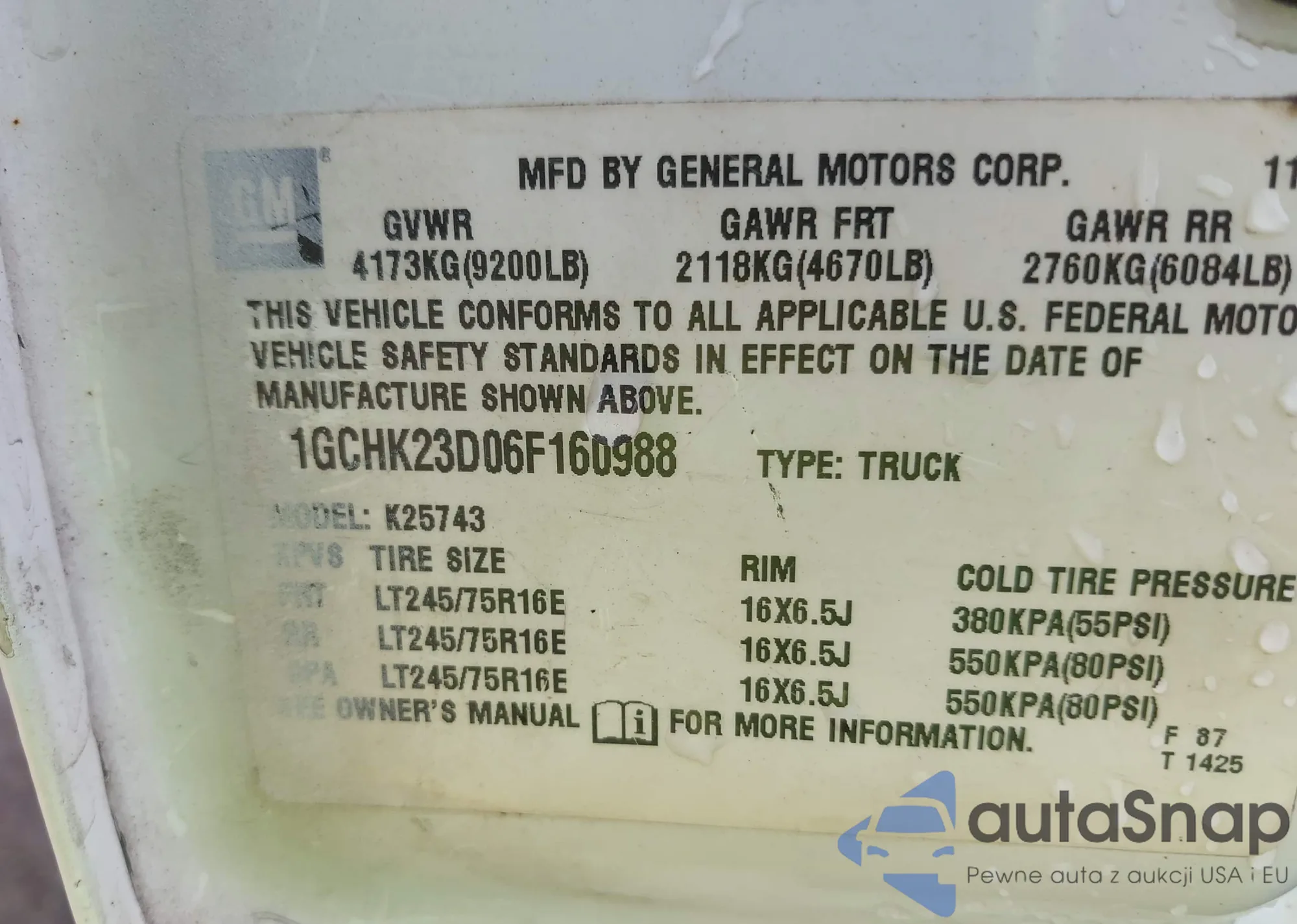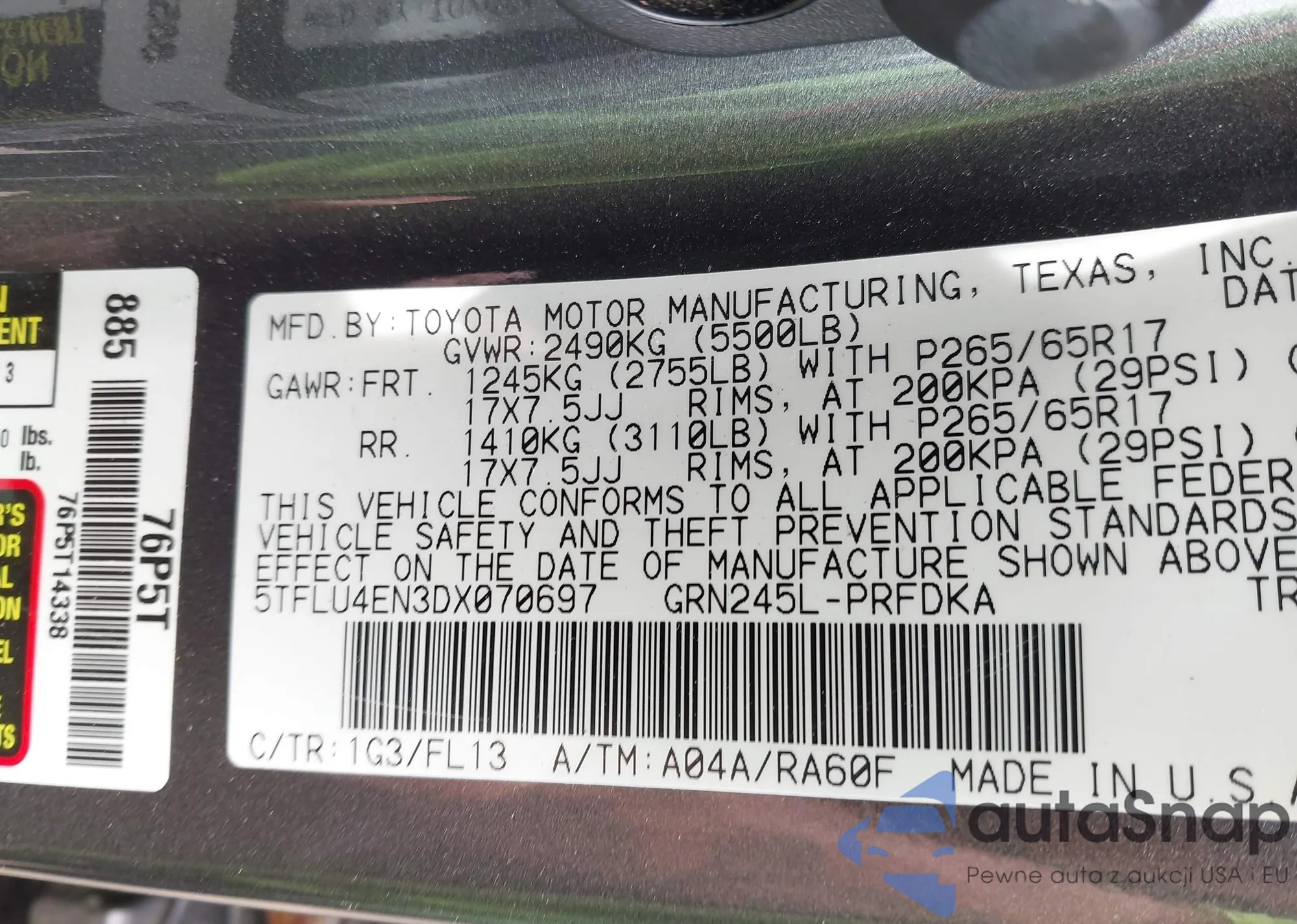 • VIN 5TFLU4EN3DX070697