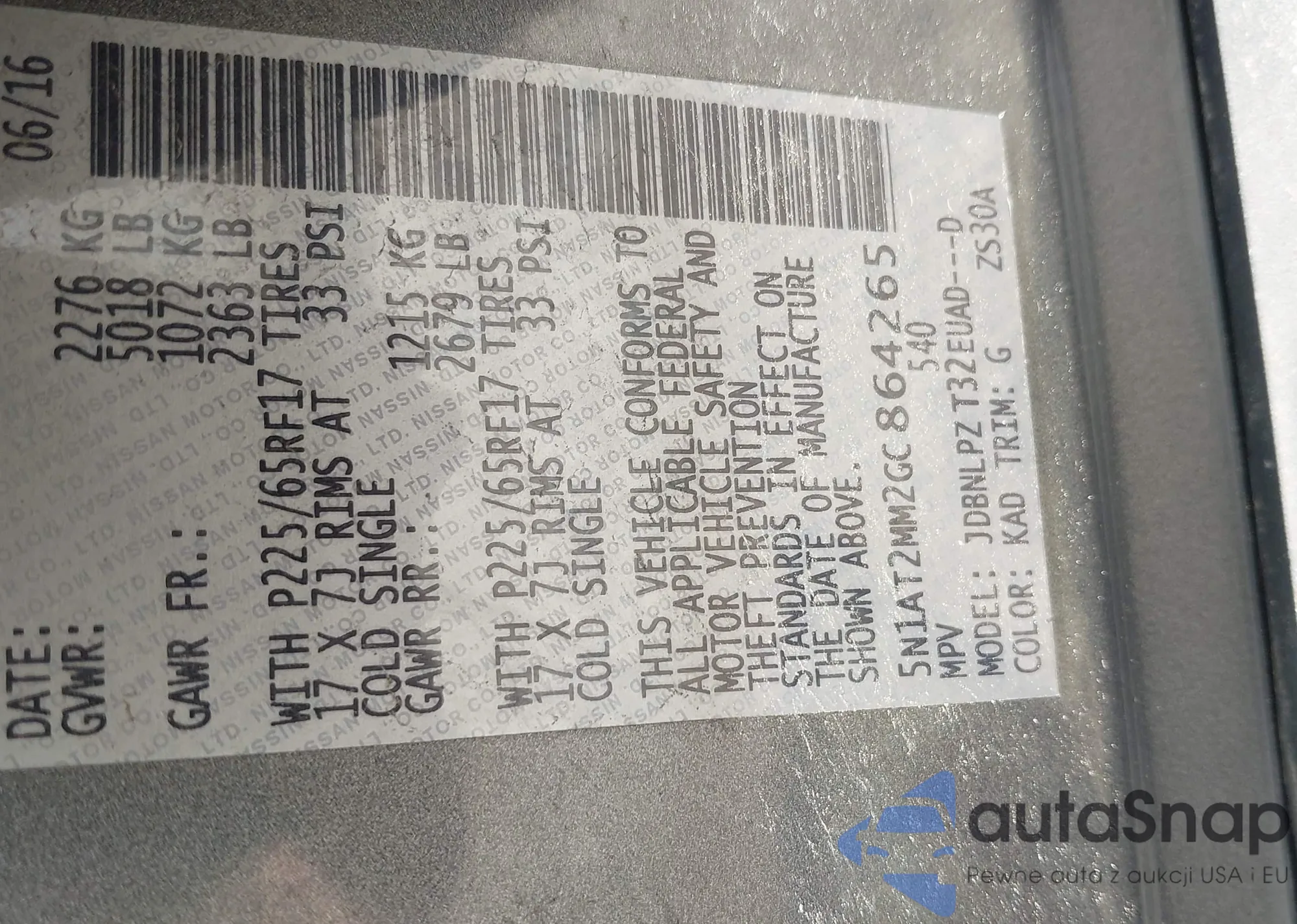 LOT: 42388394 VIN: 5N1AT2MM2GC864265