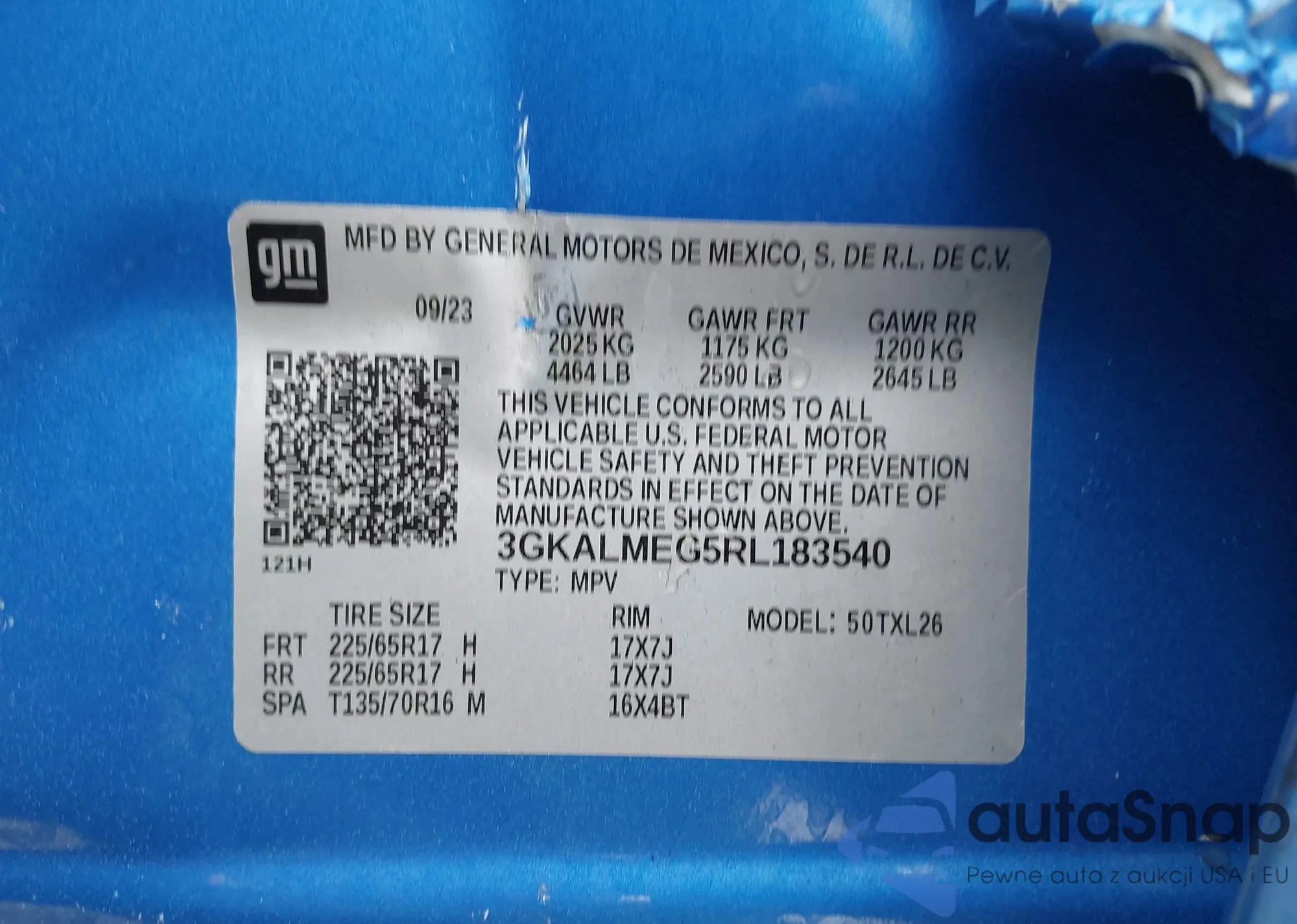 • VIN 3GKALMEG5RL183540