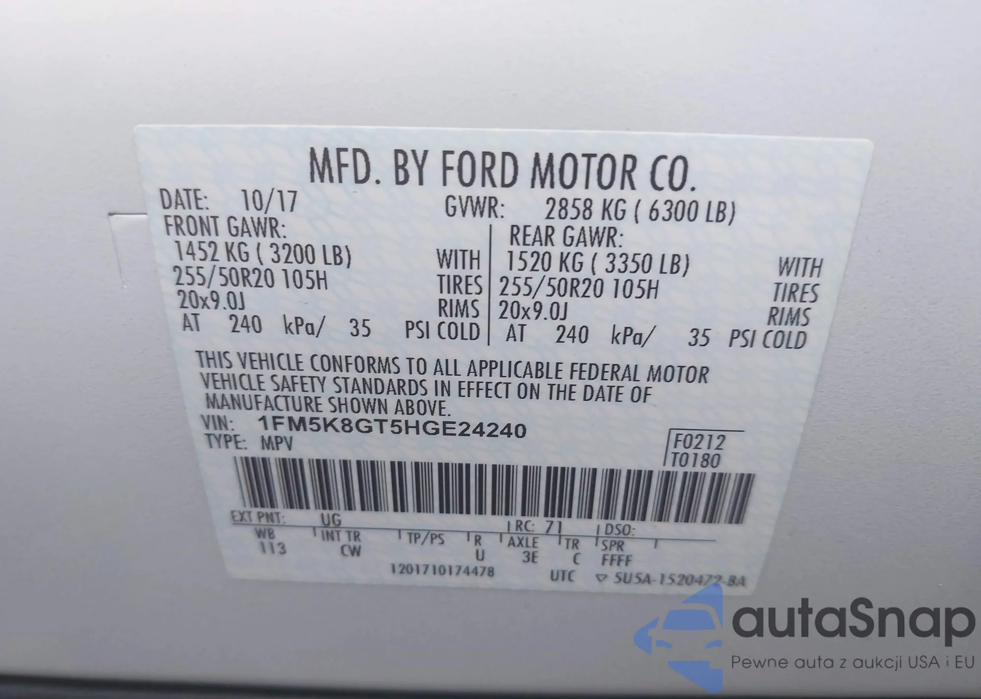 LOT: 42423810 VIN: 2FMPK3K92KBC35700