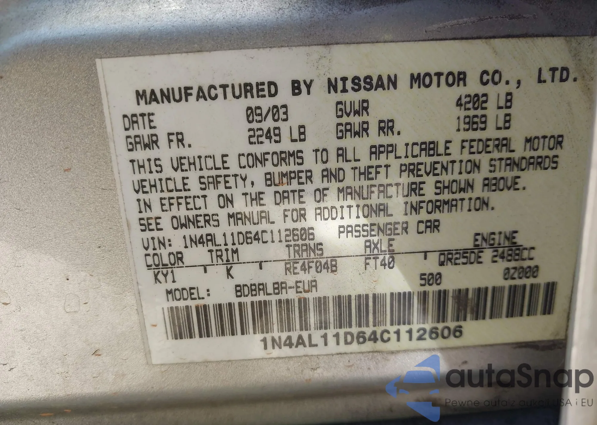 • VIN 1N4AL11D64C112606