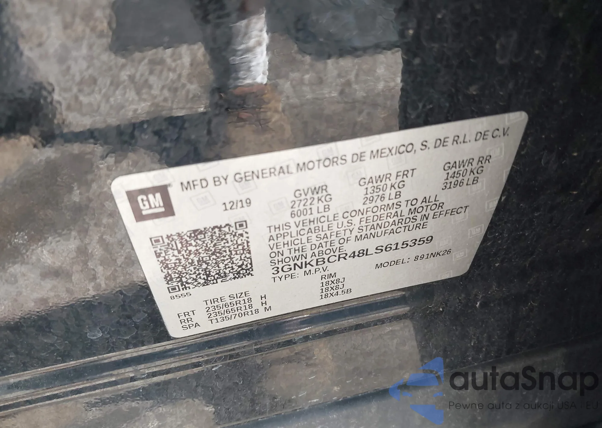 LOT: 42607463 VIN: 3GNKBCR48LS615359