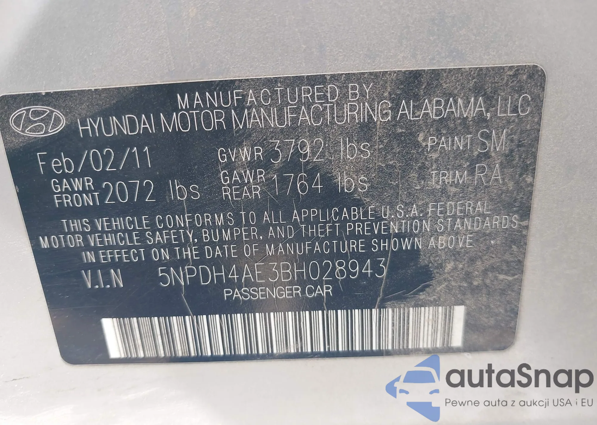 LOT: 42621573 VIN: 5NPDH4AE3BH028943