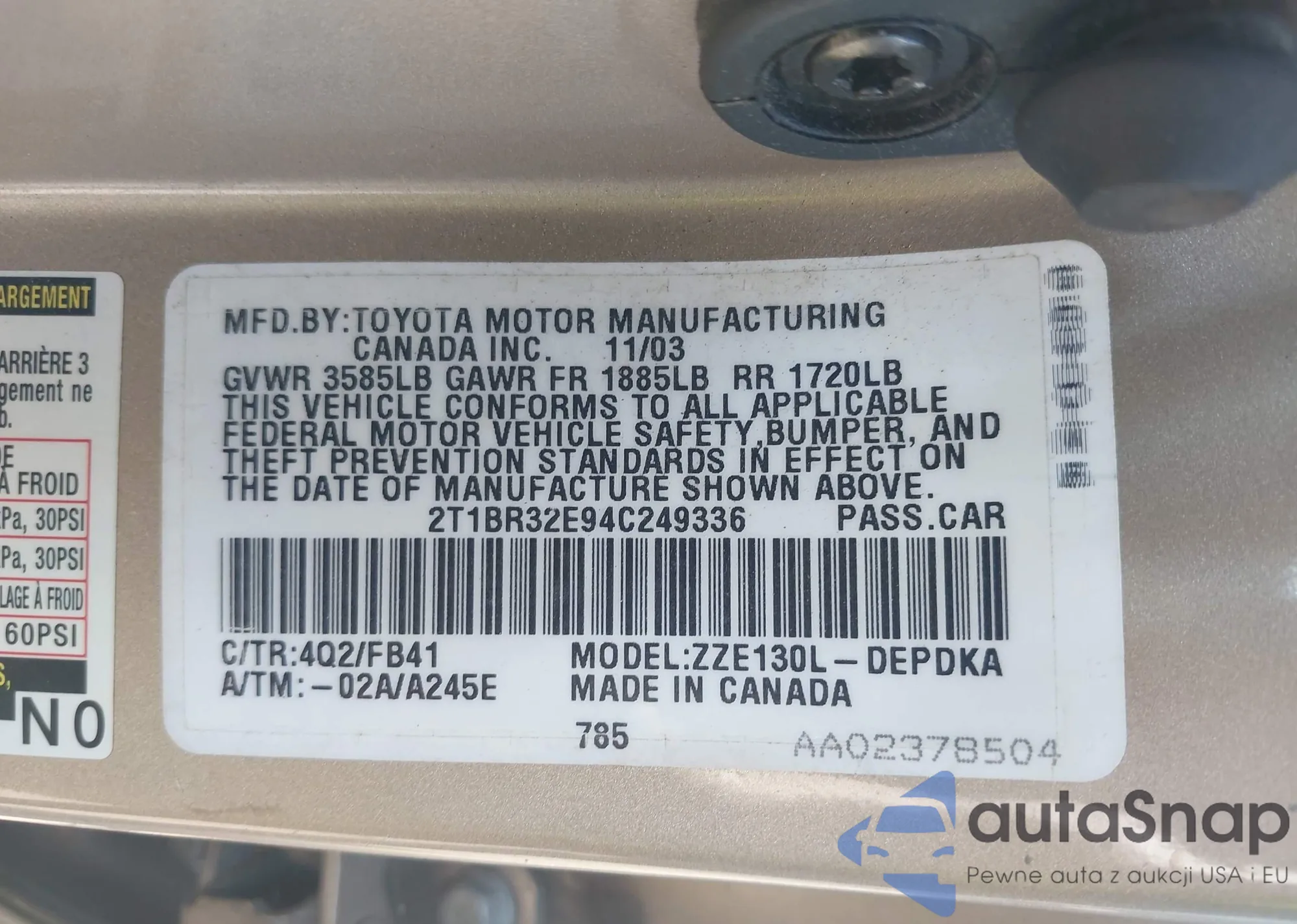 • VIN 2T1BR32E94C249336