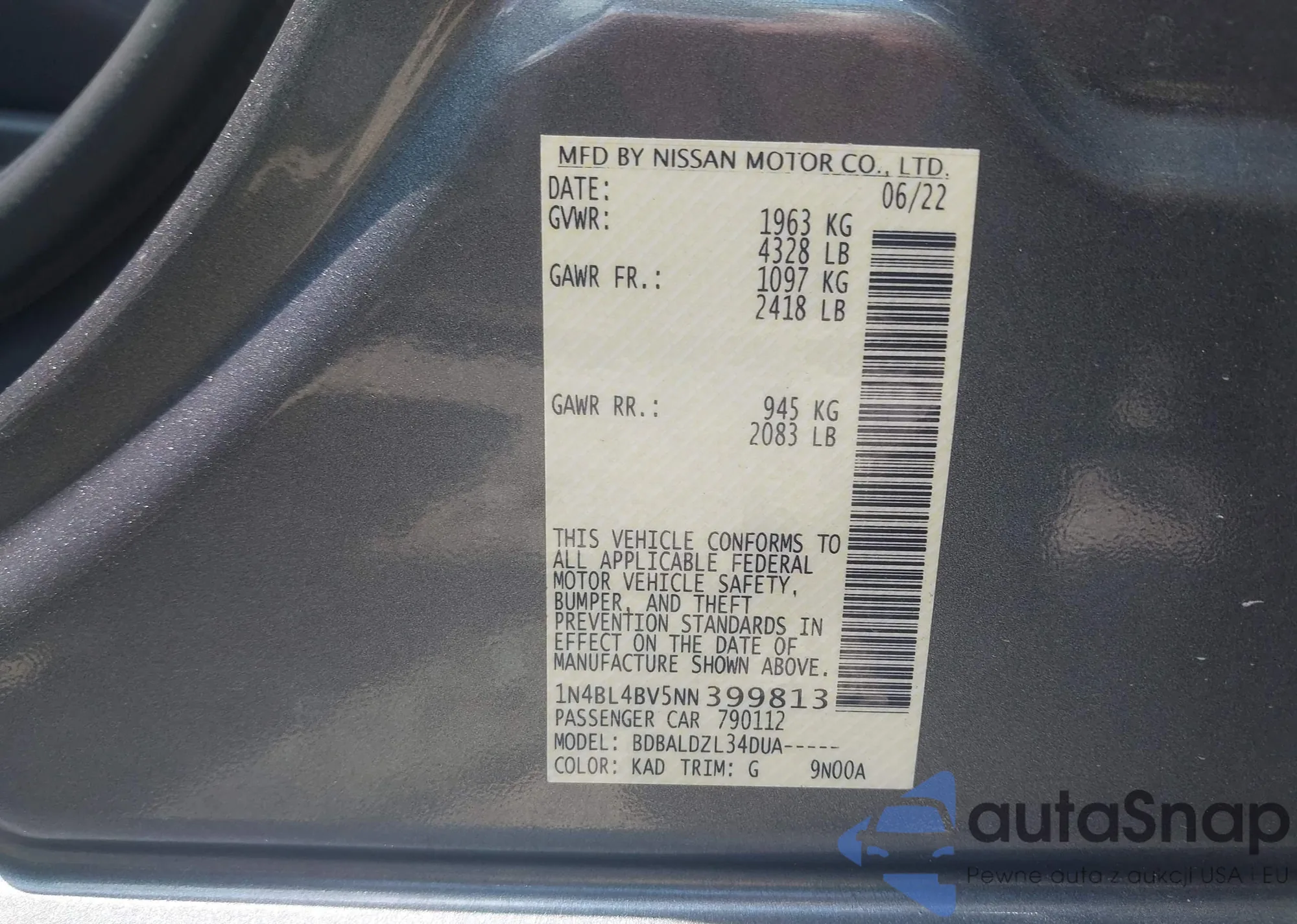 LOT: 42652655 VIN: 1N4BL4BV5NN399813