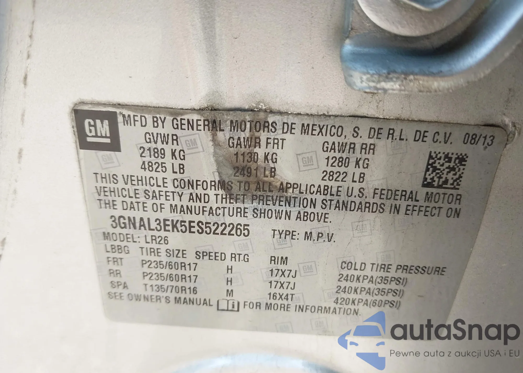 • VIN 3GNAL3EK5ES522265
