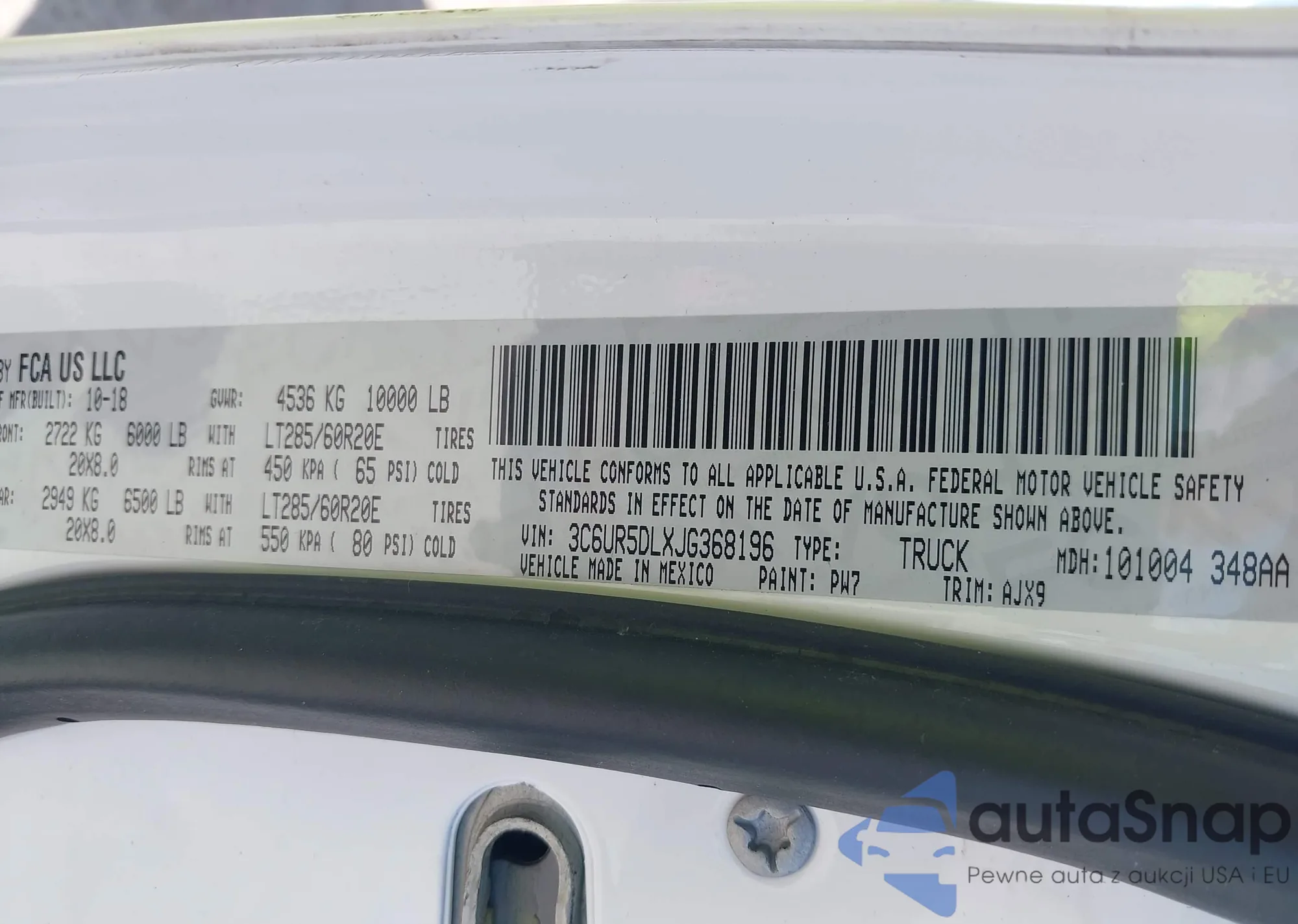• VIN 3C6UR5DLXJG368196