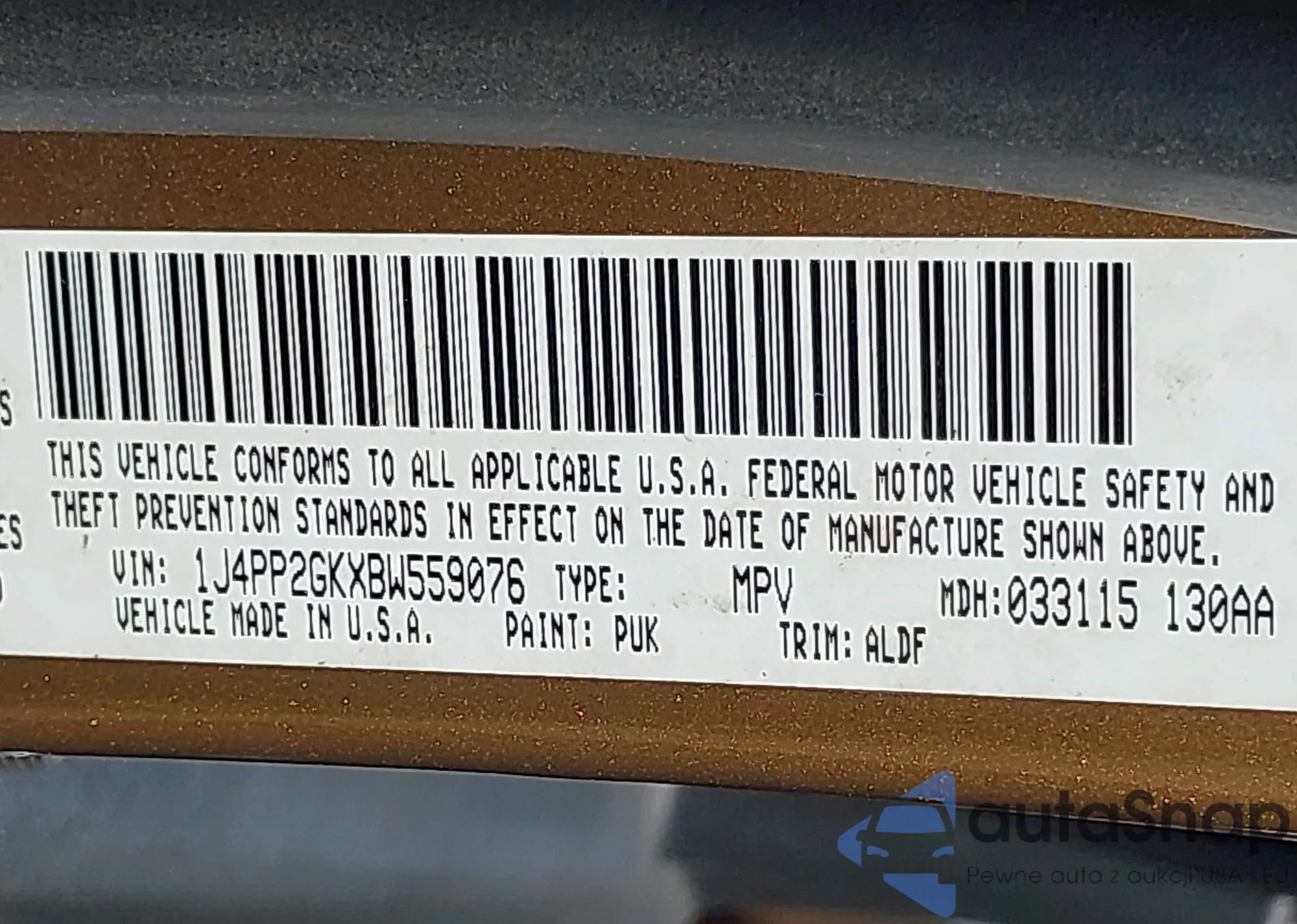 • VIN 1J4PP2GKXBW559076