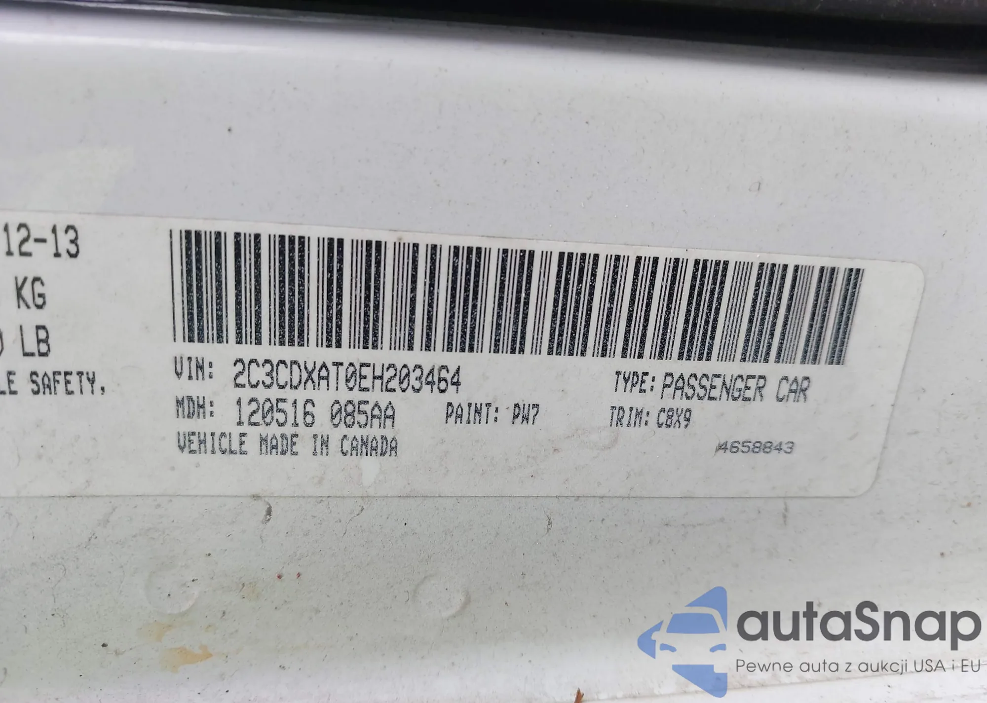 • VIN 2C3CDXAT0EH203464