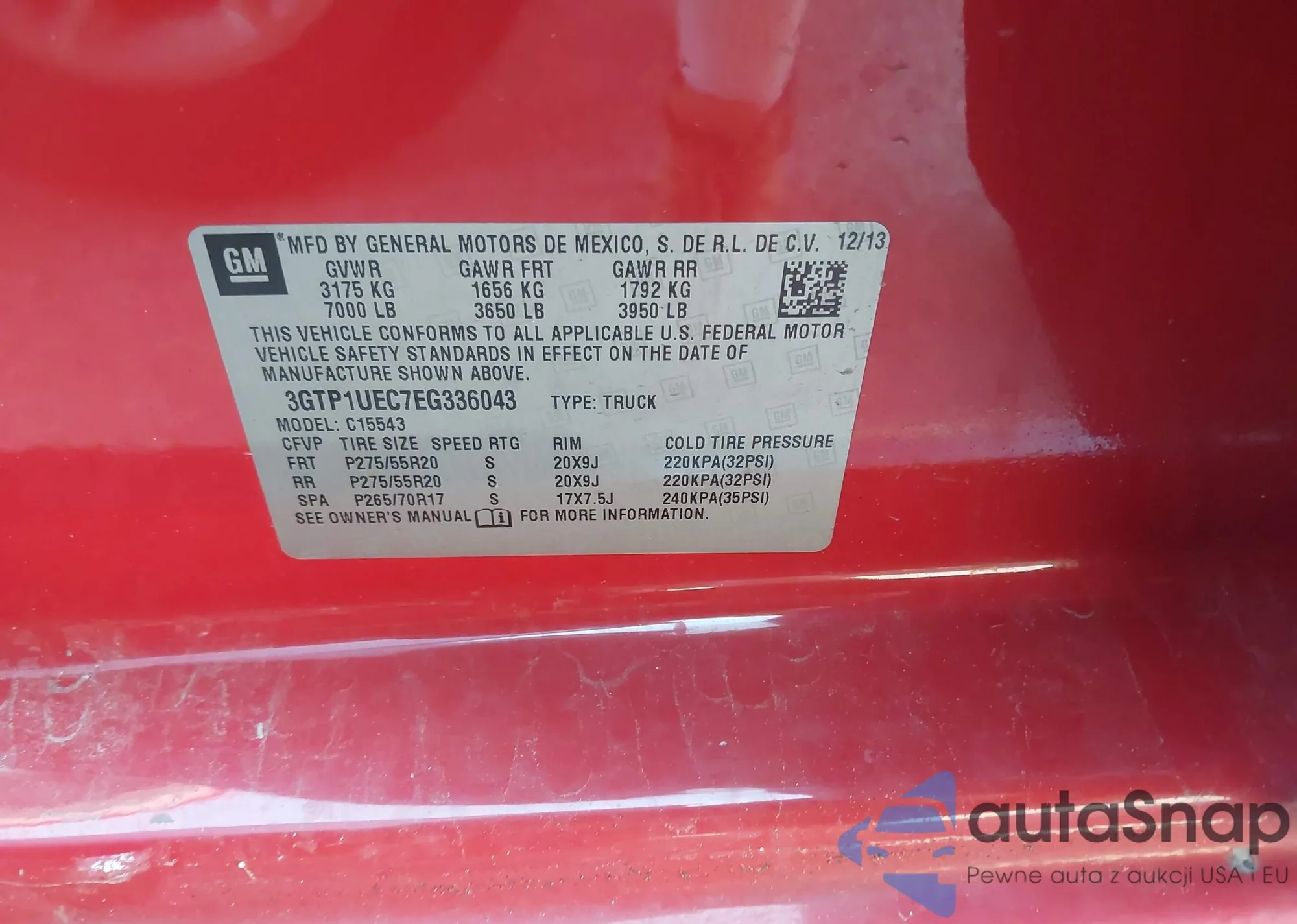 • VIN 3GTP1UEC7EG336043