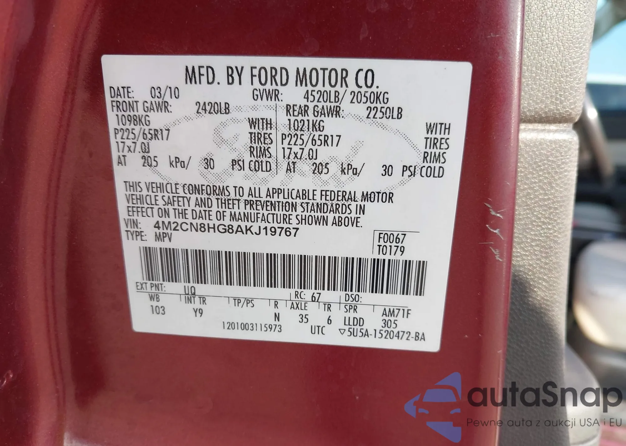 • VIN 4M2CN8HG8AKJ19767