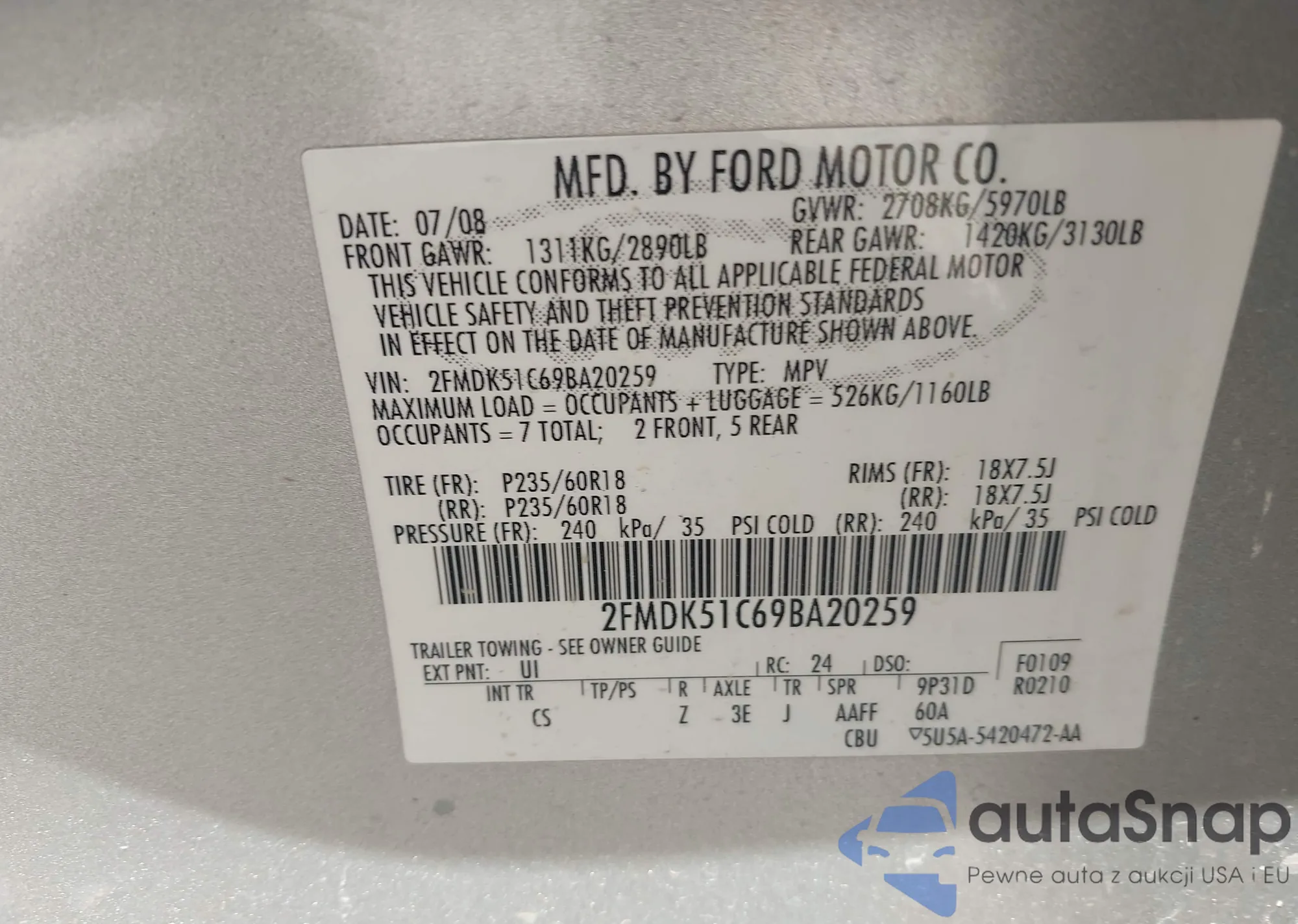 LOT: 42575849 VIN: 2FMDK51C69BA20259