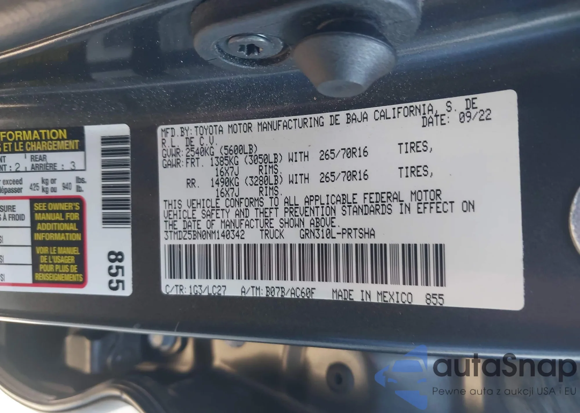 • VIN 3TMDZ5BN0NM140342