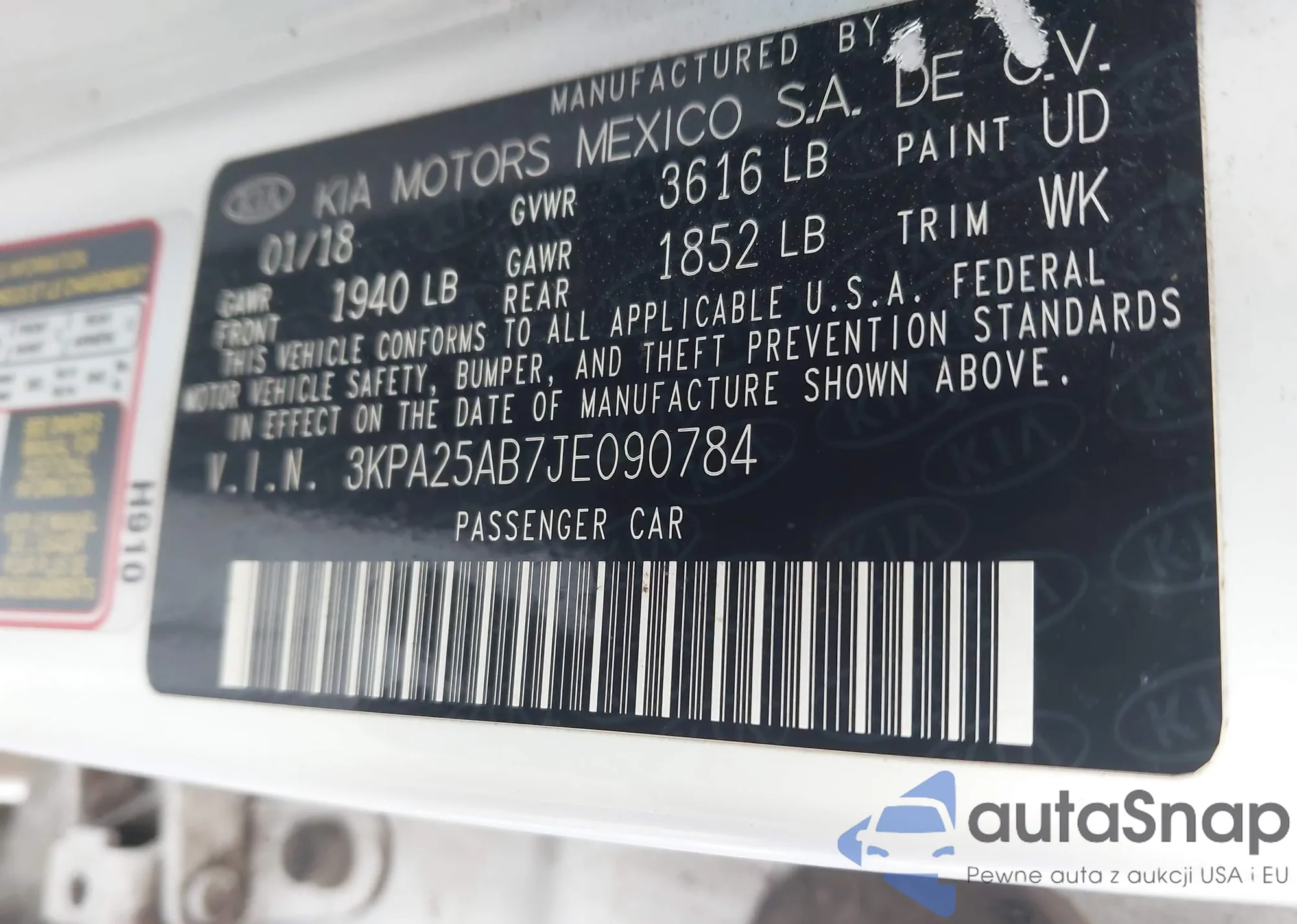 • VIN 3KPA25AB7JE090784