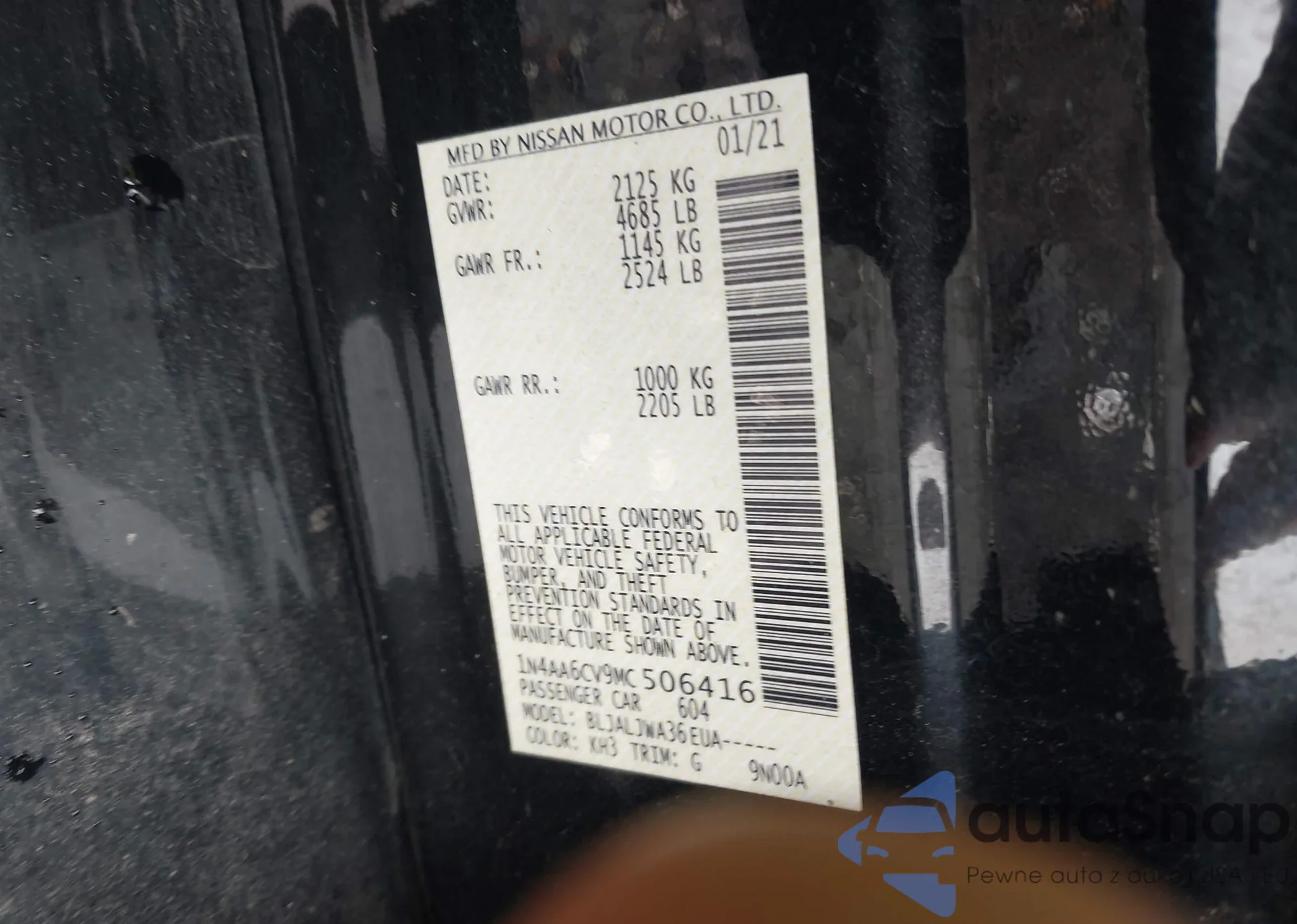 • VIN 1N4AA6CV9MC506416