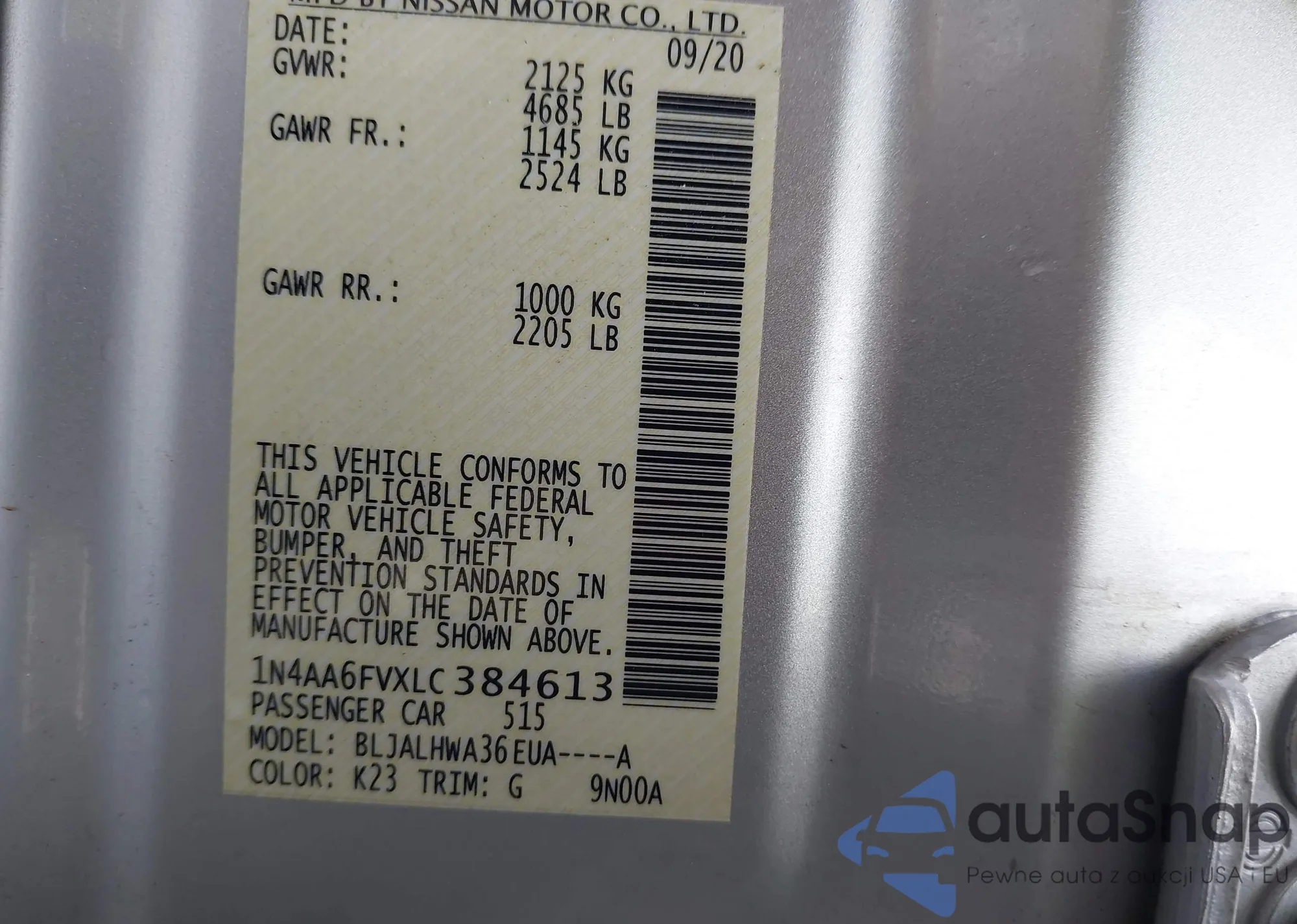 LOT: 42426698 VIN: 1N4AA6FVXLC384613