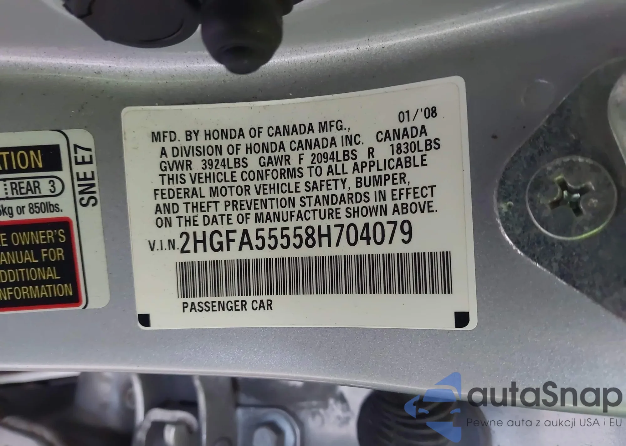 LOT: 42464423 VIN: 1FAHP35N08W267903