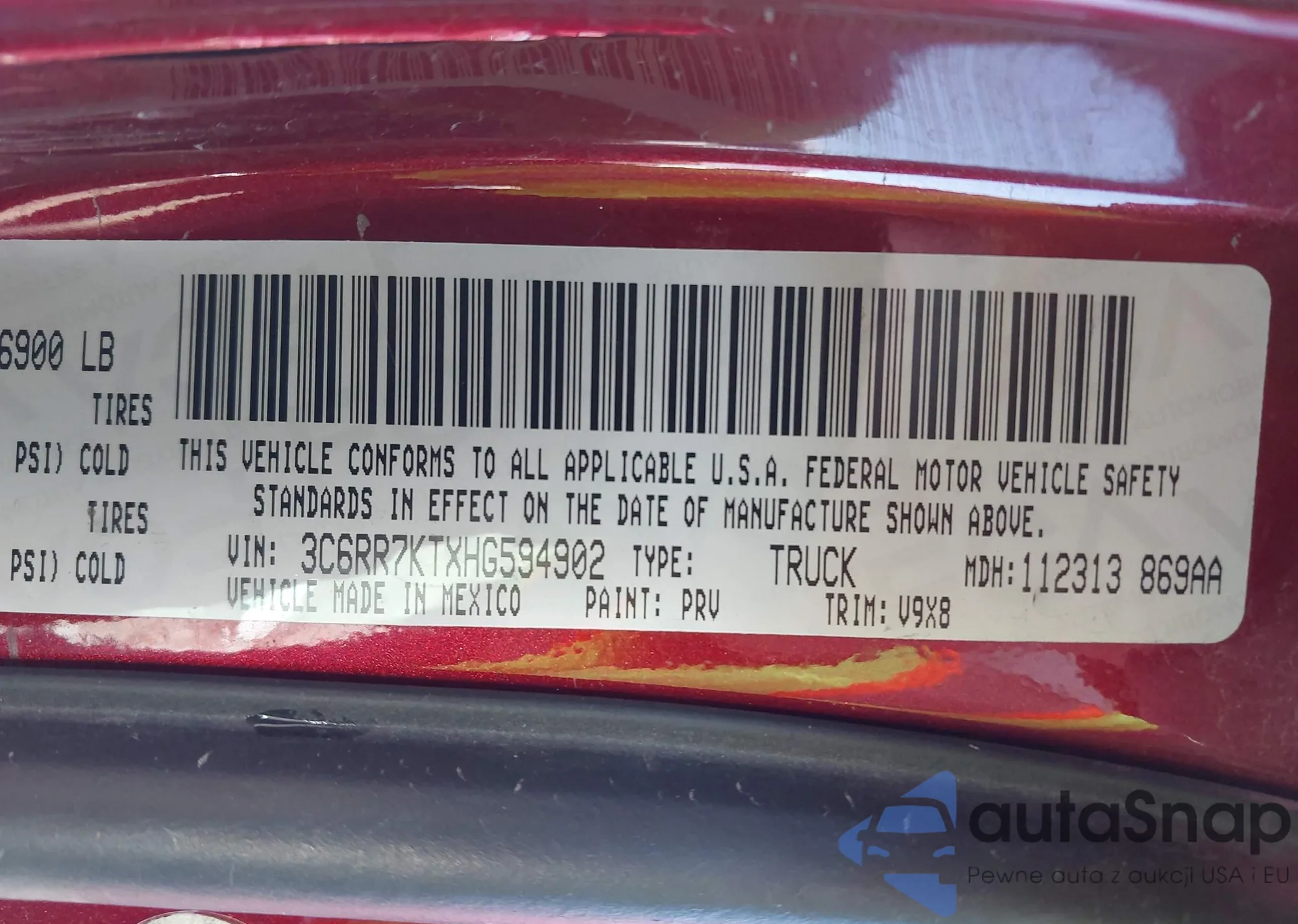 • VIN 3C6RR7KTXHG594902