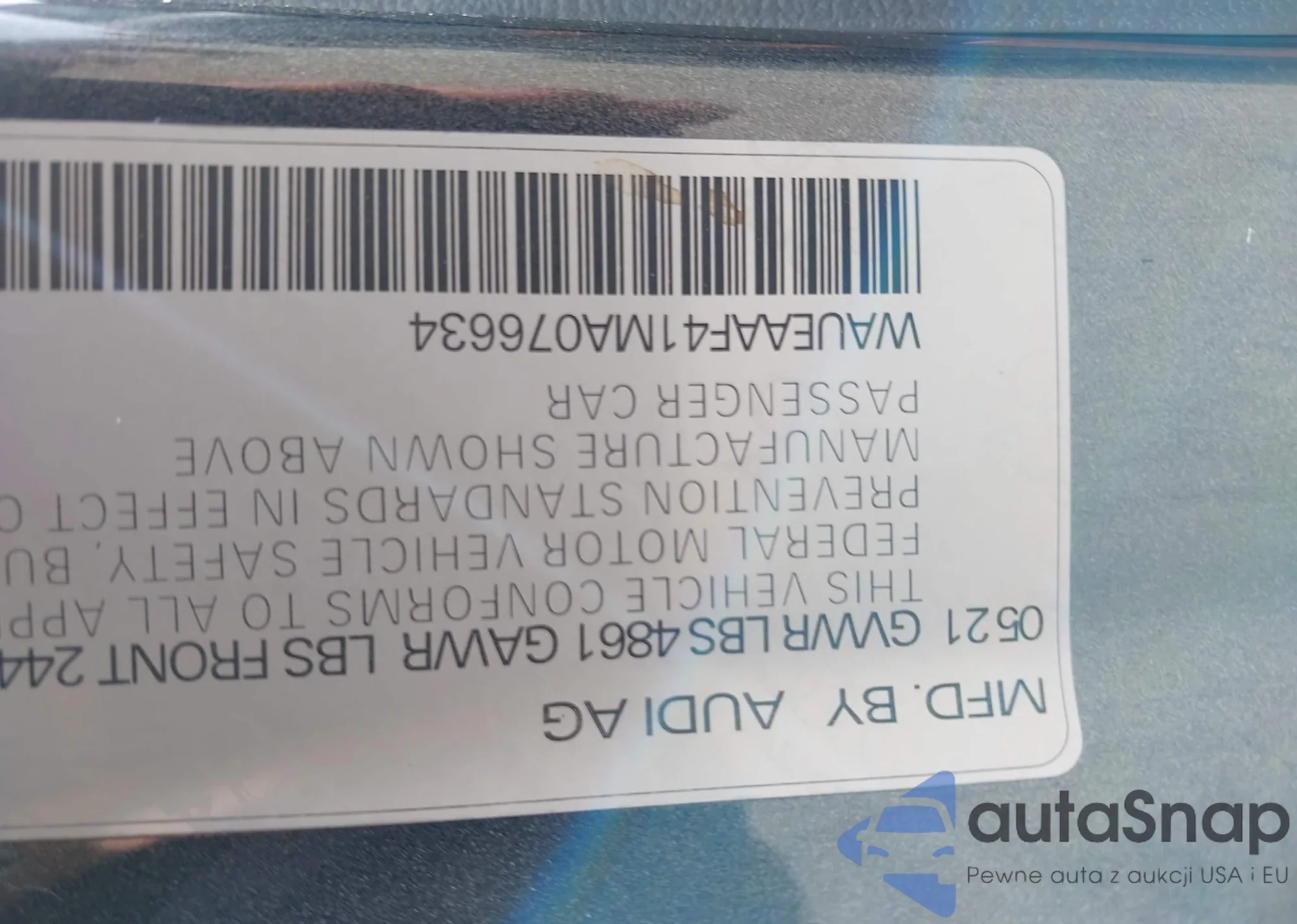 LOT: 42246116 VIN: WAUEAAF41MA076634