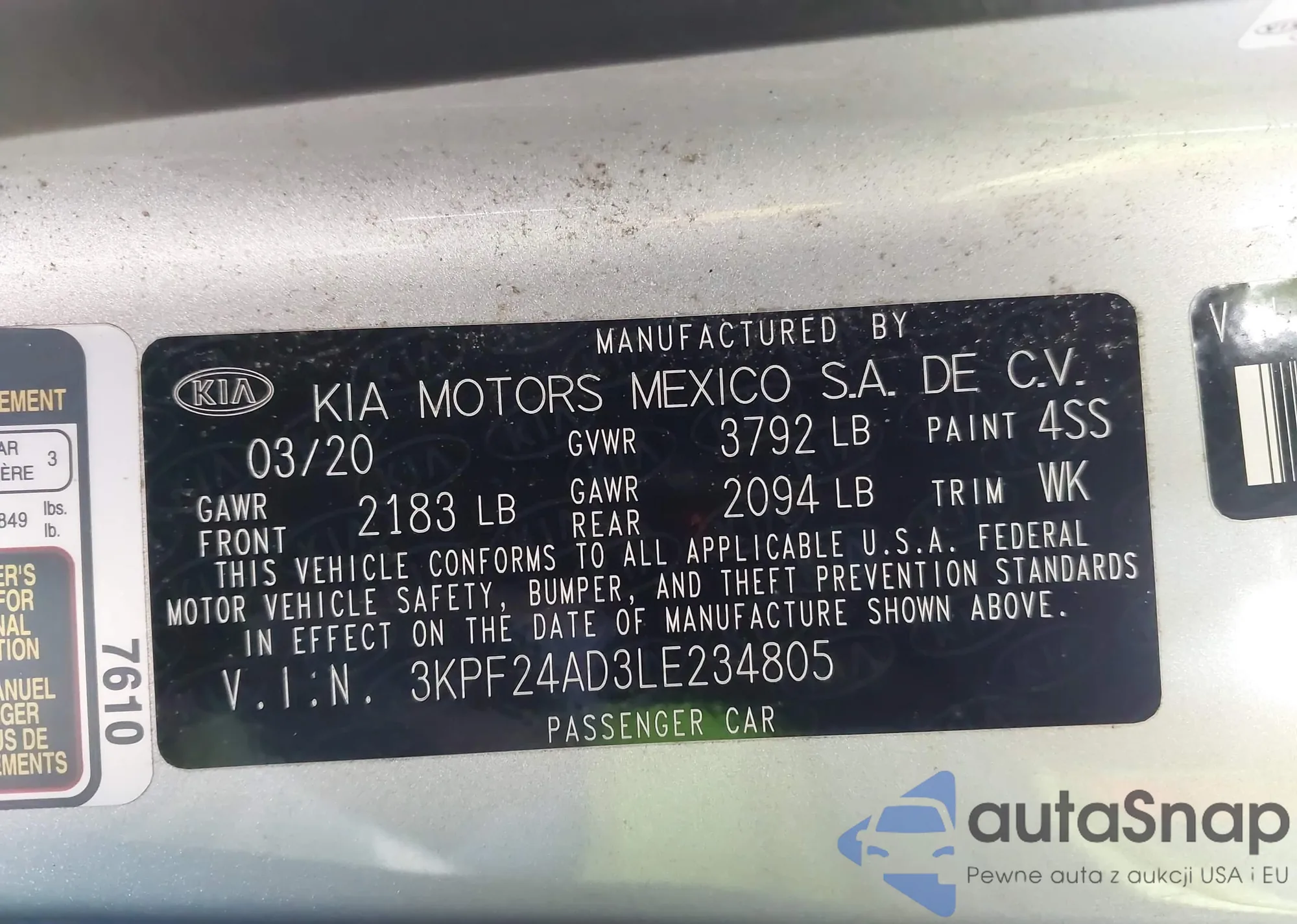 LOT: 42276980 VIN: KNDJ23AU4L7108344