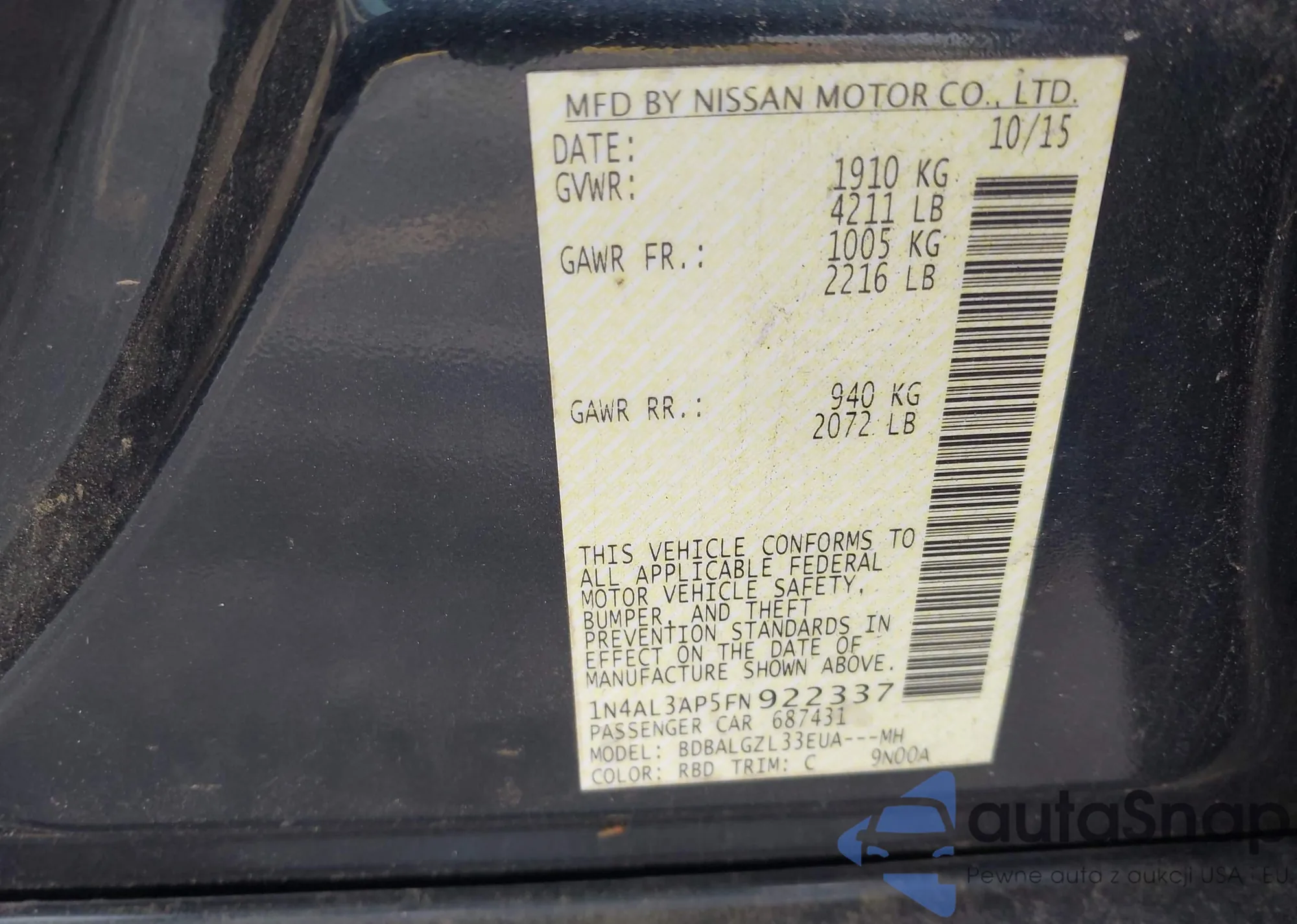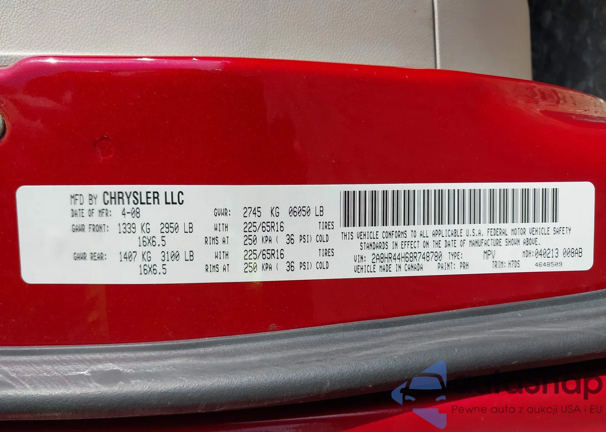 • VIN 1C4RDJAG6NC174979