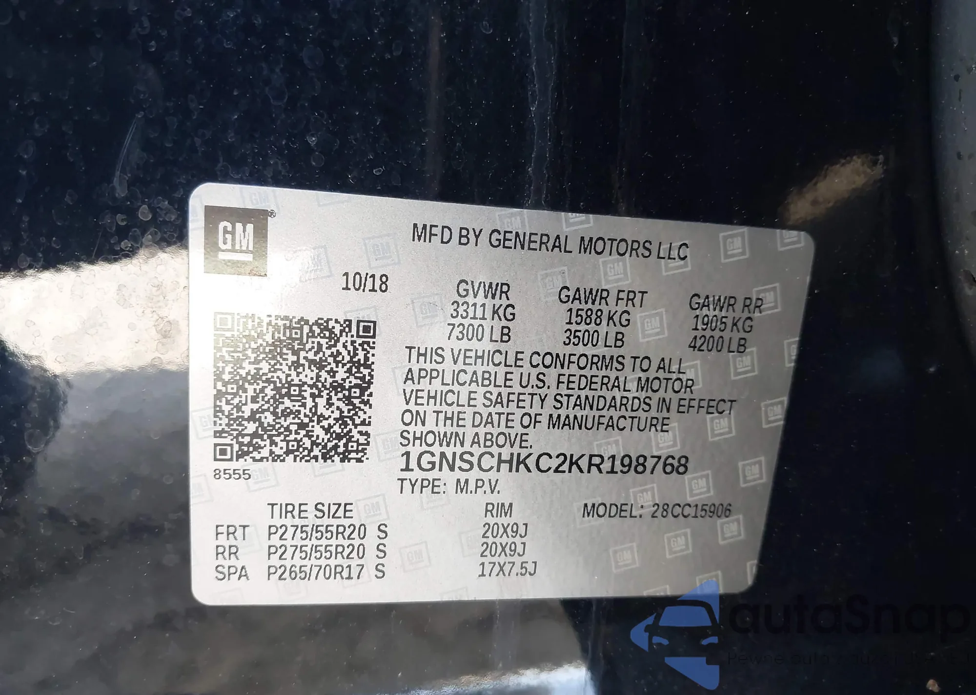 LOT: 42663456 VIN: 1GNSCHKC2KR198768