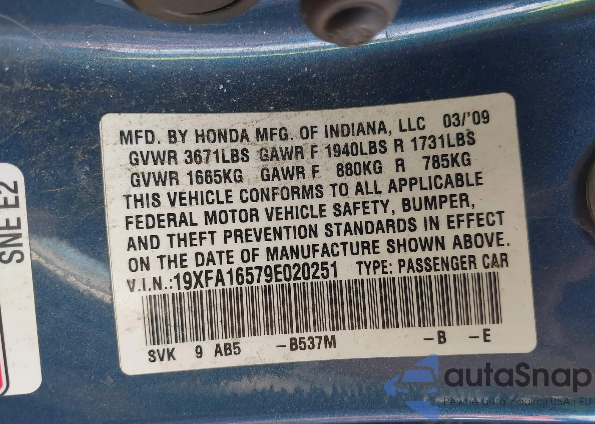 • VIN 19XFA16579E020251