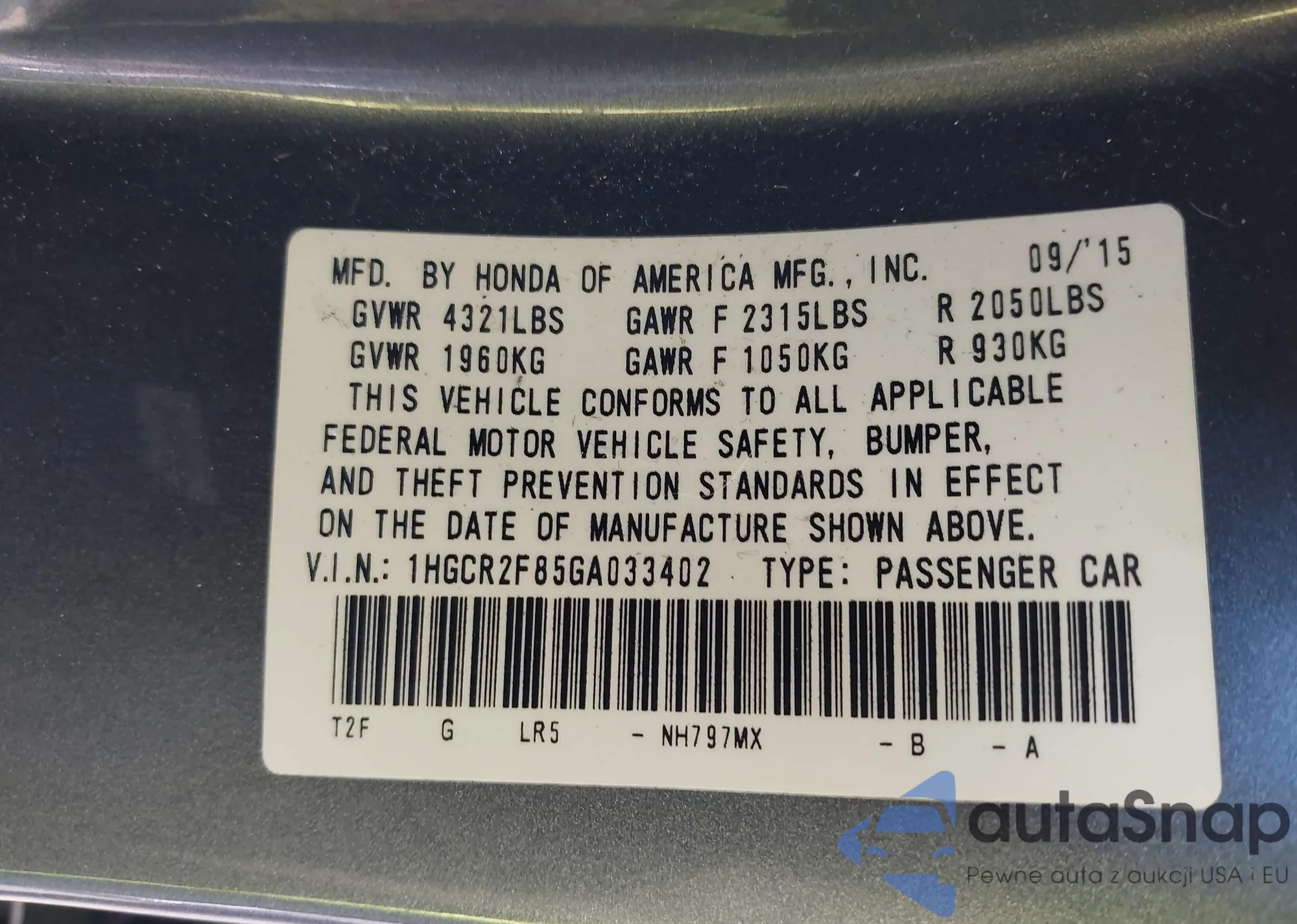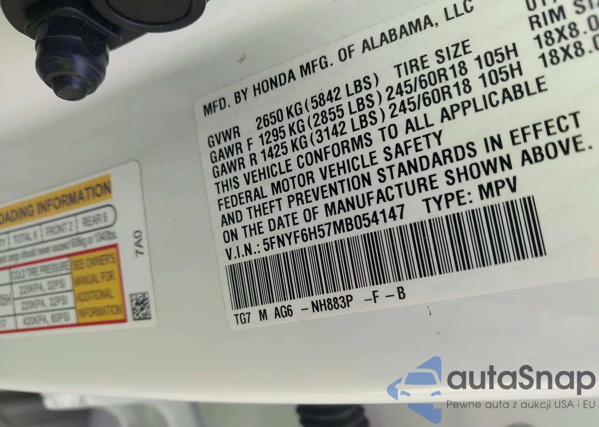 • VIN 5FNYF6H57MB054147