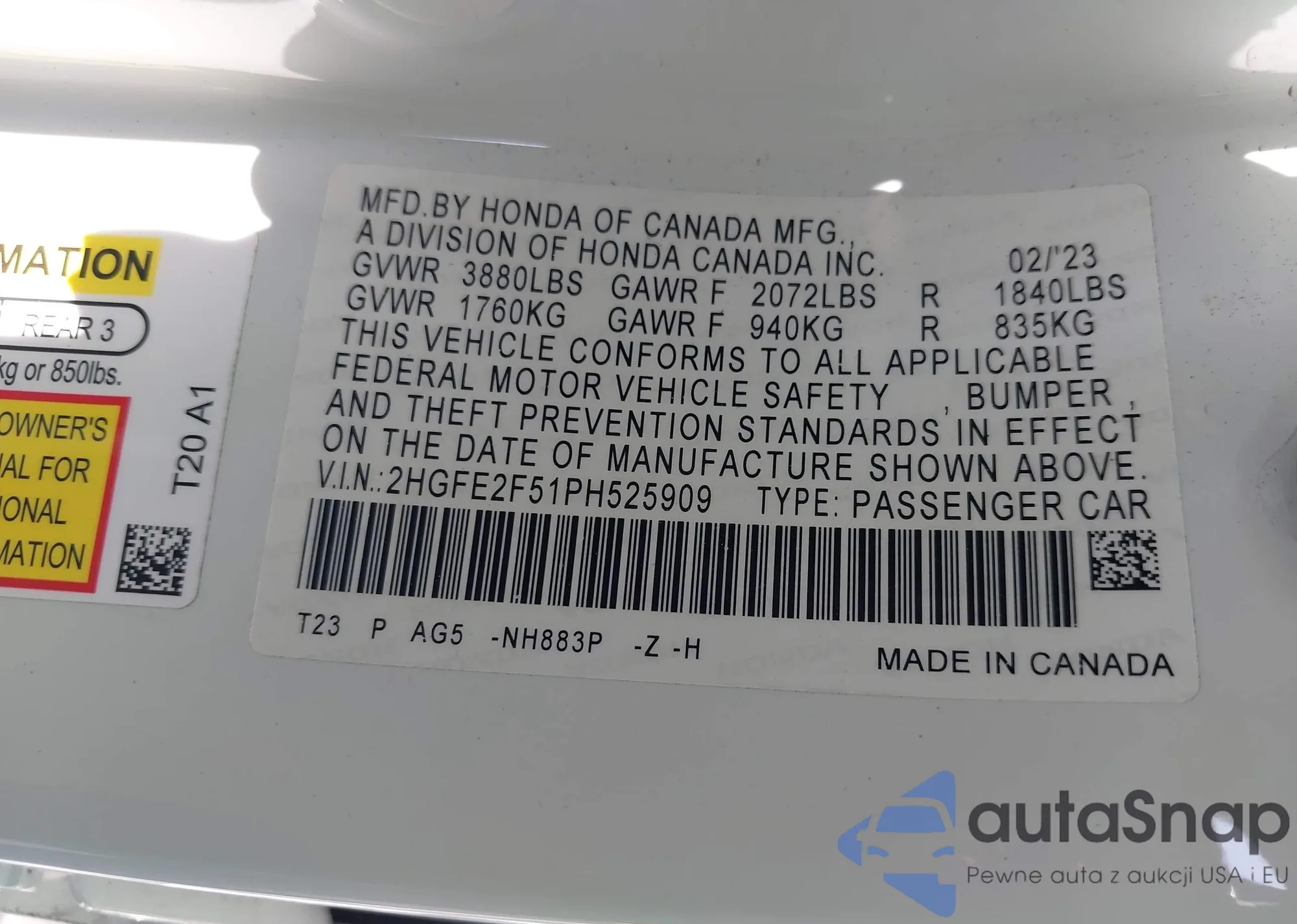 • VIN 2HGFE2F51PH525909
