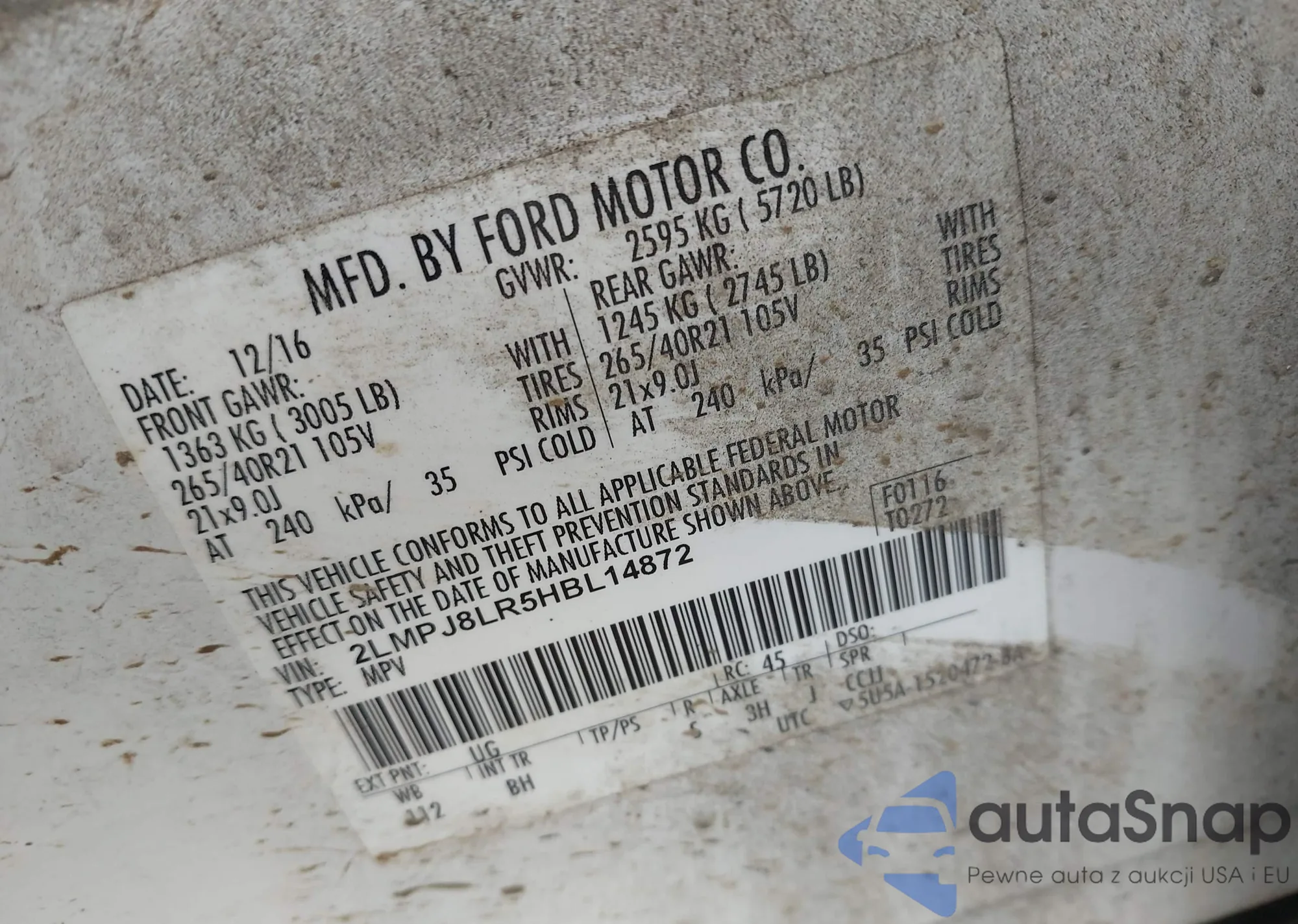 LOT: 42644926 VIN: 1FA6P0HD8G5135436