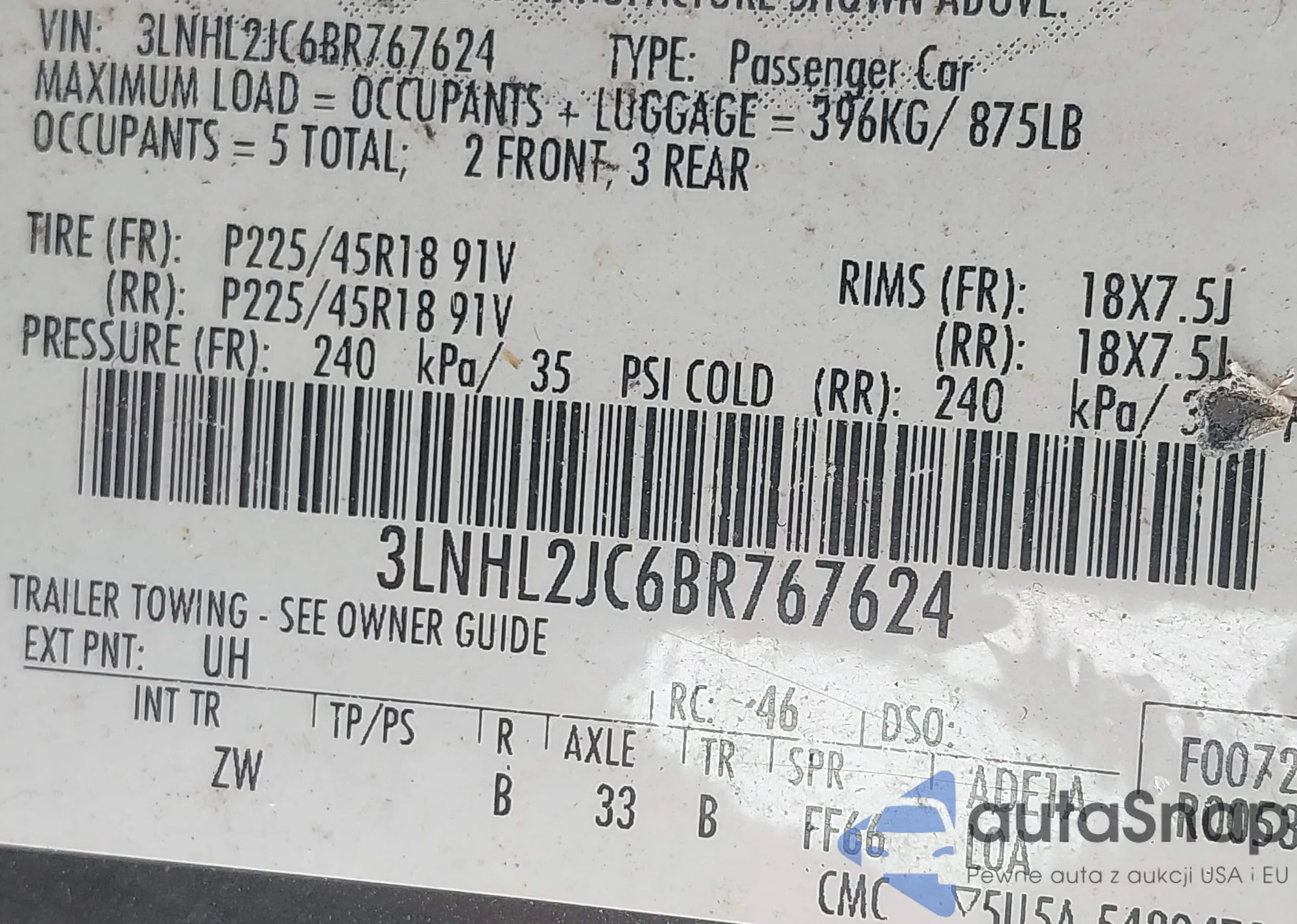 LOT: 42189767 VIN: 2HGFE2F51PH525909