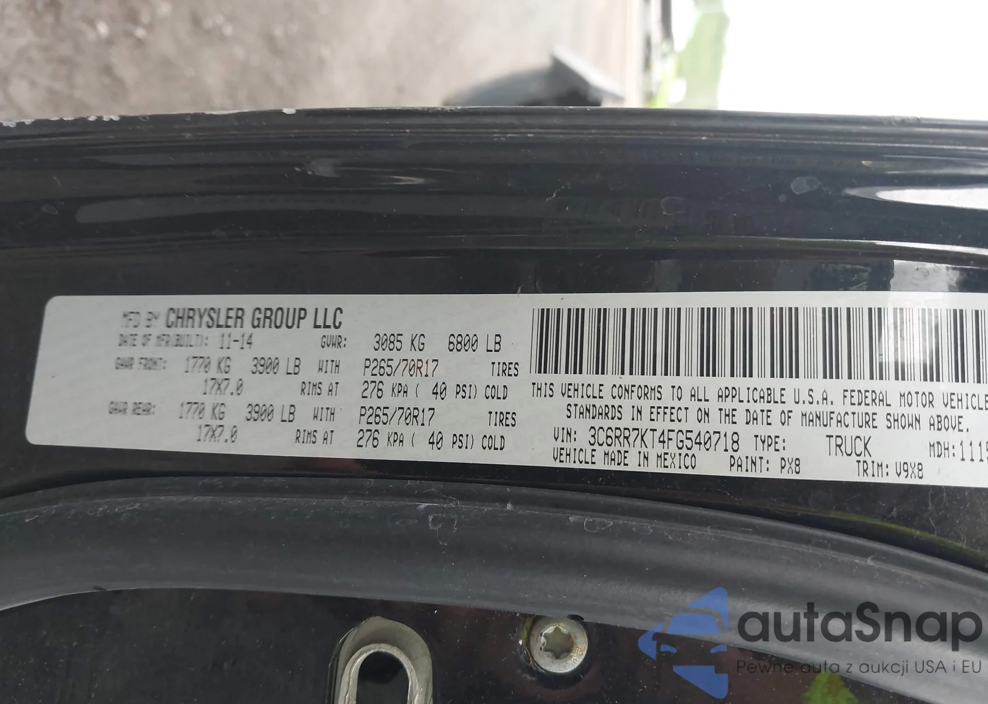 • VIN 3C6RR7KT4FG540718